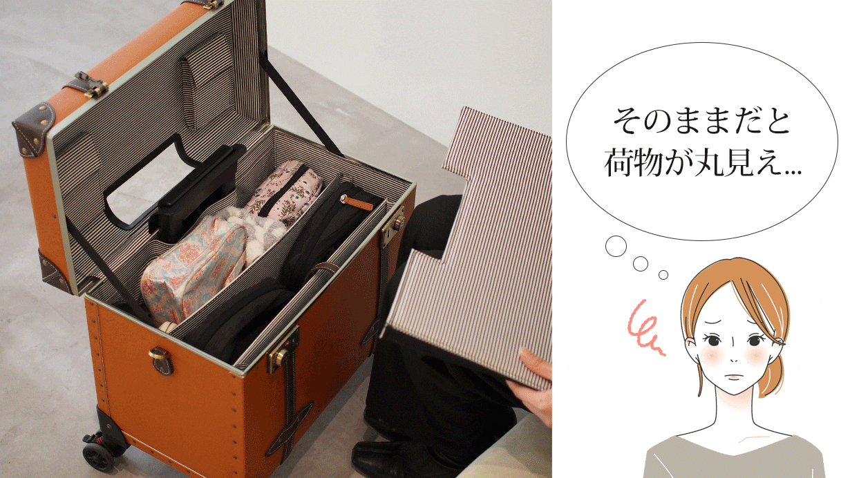 中仕切りは本体サイズにぴったりなので荷物の目隠しとしてもお使いいただけます。