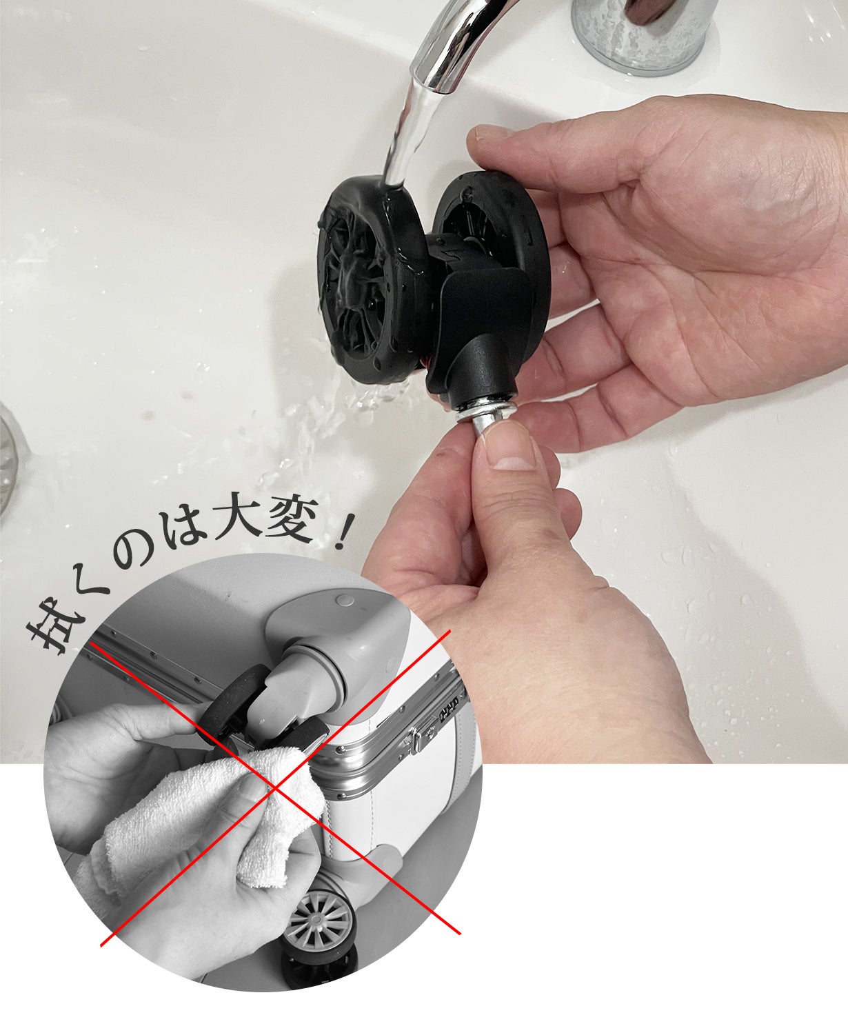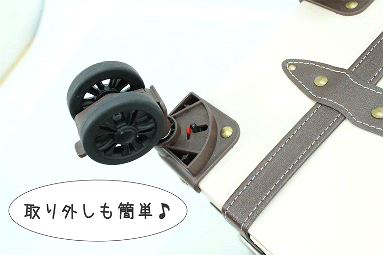 スーツケースの故障の原因で一番多いのがキャスター部分。万が一修理が必要になっても、キャスターを取り替えるだけでOK。修理に出す必要がないので、修理費用を抑え、手間を省くことができます。