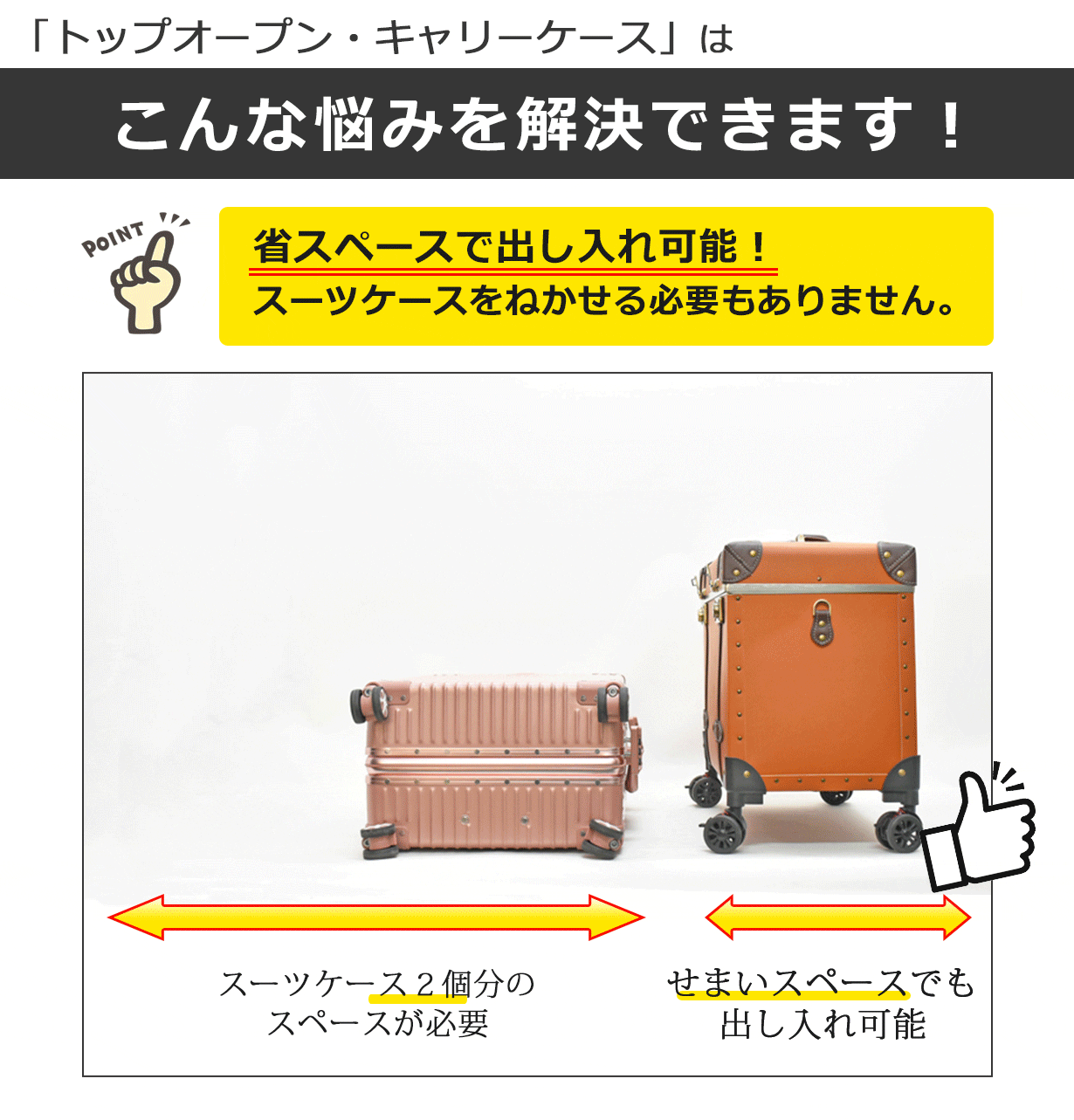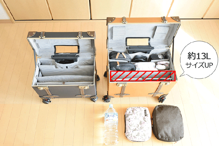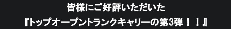 「倒すことなく荷物を出し入れできるトップオープン・トランクキャリーLサイズ」は、5年を要した通常サイズでなんと、¥36,399,012-(2025.10.16.現在)もの購入を頂いた上に完成した逸品となっています。
