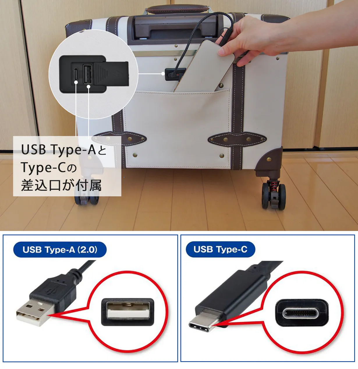 移動中や待ち時間にも充電可能なUSBポート付きで便利。