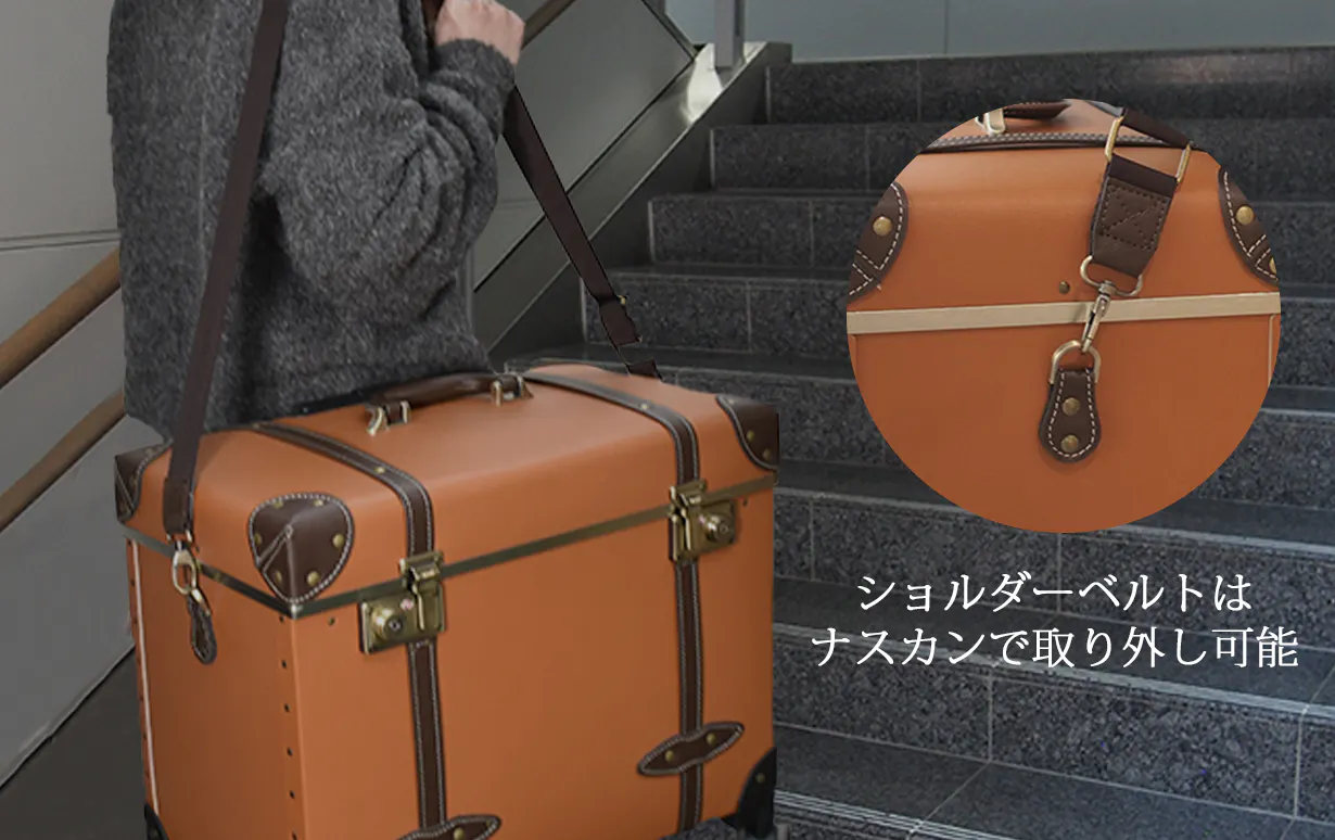 階段などに便利な取り外し可能のショルダーベルト付き。