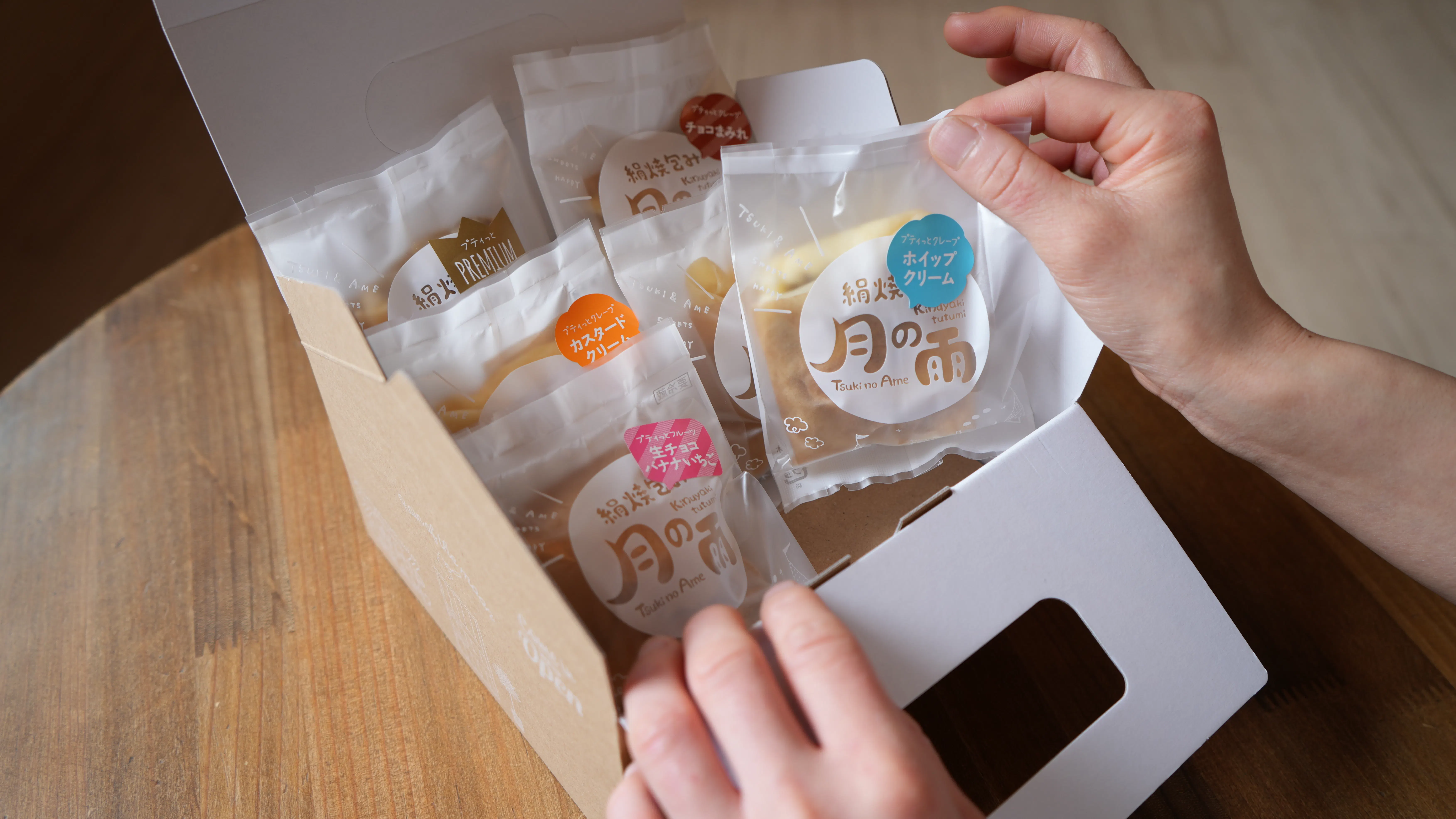 一般的なクレープ店では、1種類の生地をすべてのフレーバーに使用することが多いですが、「月の雨」ではフレーバーの個性をより生かすために、特徴の異なる3種類のクレープ生地を使い分けています。全体のバランスや一つひとつの味の完成度まで追求した、まさに“究極のクレープ”。数々の試行錯誤をくり返し完成したその一品は、今では函館を代表するクレープとして多くの人に愛されています。日々の努力と、クレープに向き合う真摯な想いが、多くの人の心に届いたのだと思います。