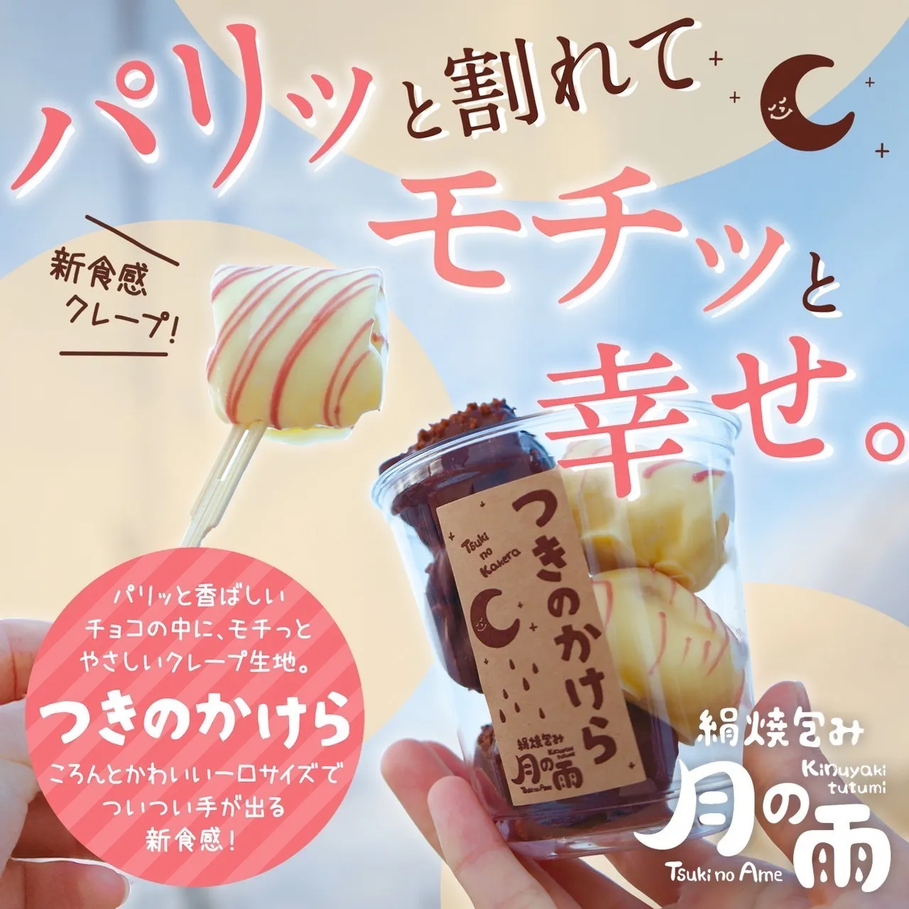 食べ進めるともちもち食感に変わる「サクもち」食感のクレープを提供。