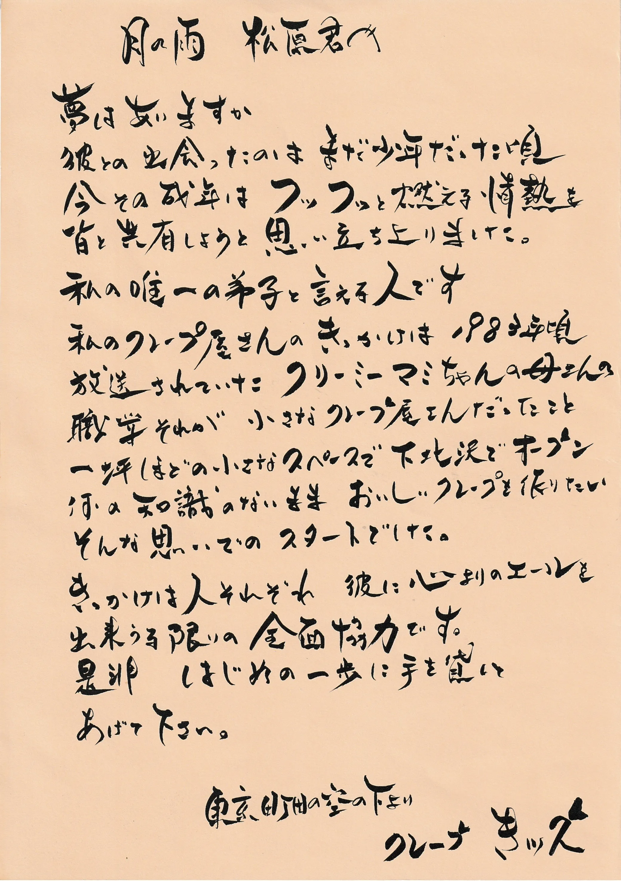 あの頃、師匠の作ってくれたクレープが“感動”を与えてくれたように、
