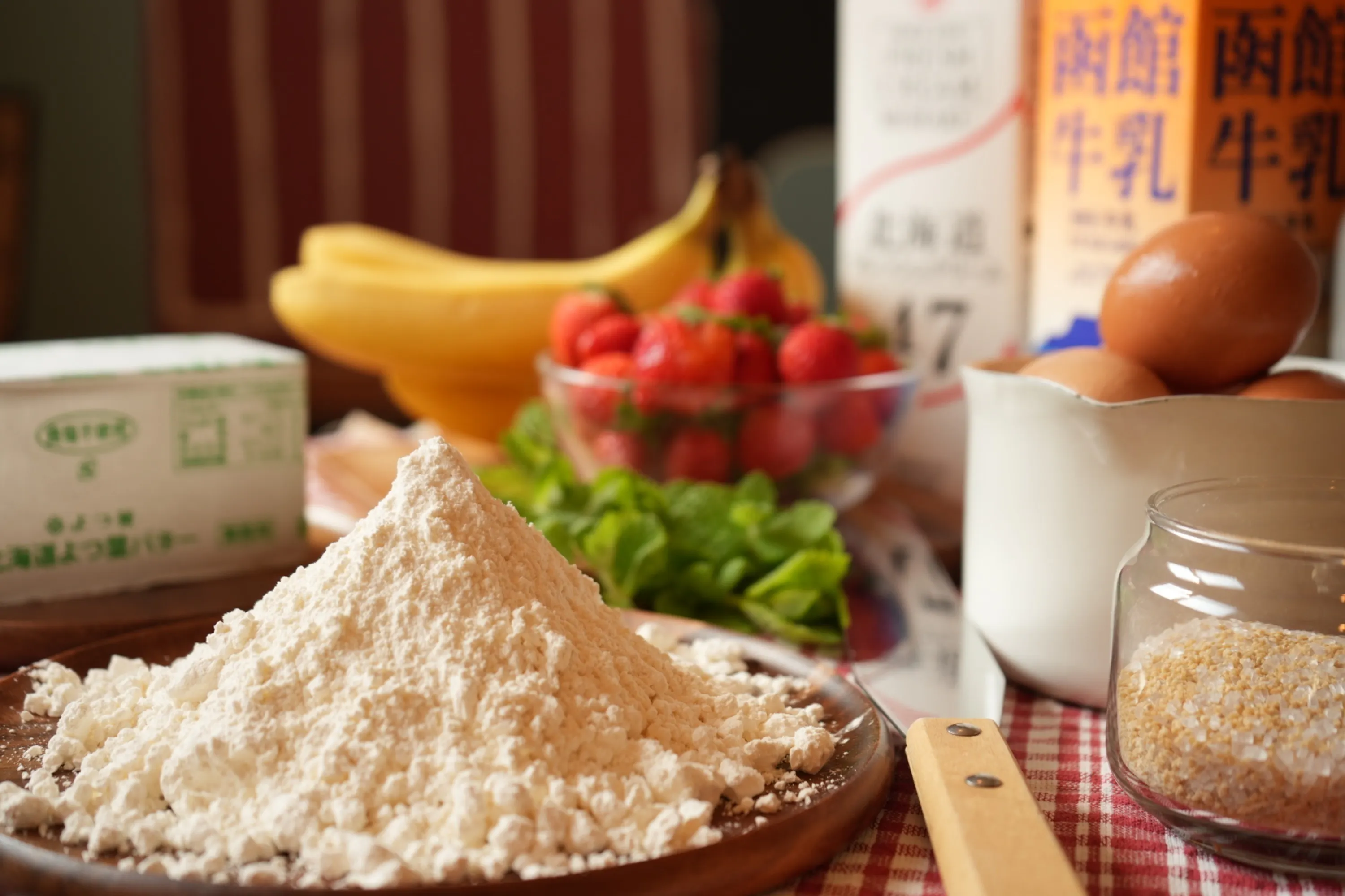 数種類の道産小麦から牛乳やバターと砂糖などの分量の配合を