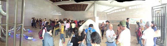 各作家と、作品を前に言葉をかわすメキシコ・ハラパの皆さん。