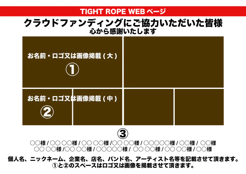 もしこの危機を乗り越えることができたら、皆様のご協力により新しく誕生するTIGHT ROPEをこれまで以上に大切にしていきます。「ただ生き残る」だけではなく、これからのライブハウスの在り方、地元ミュージシャンの育成を真剣に考え、これからも皆様に喜んで頂けるライブハウスを目指し全力で取り組んで参ります。