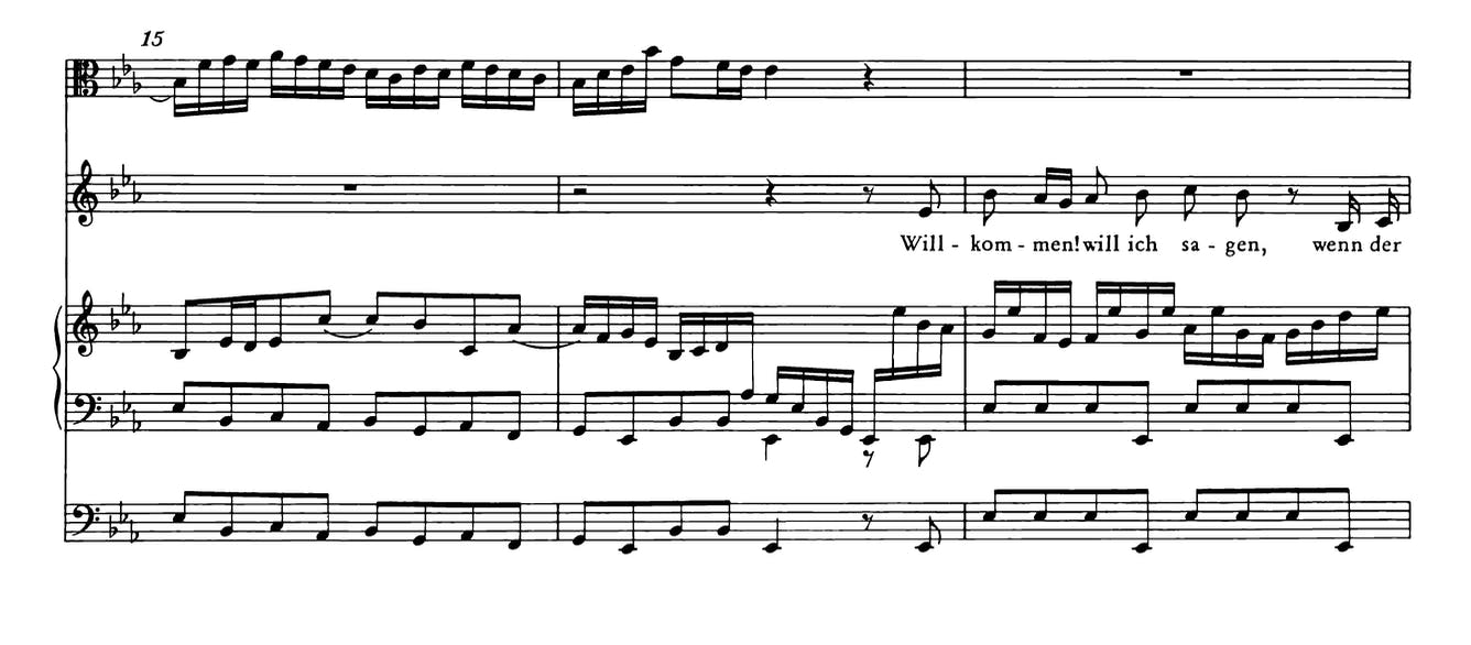 上:バッハのカンタータ第27番のアリア《ようこそ!と私は言おう》冒頭の楽譜