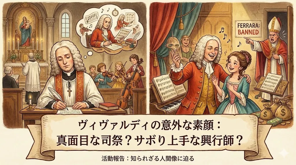 アントニオ・ヴィヴァルディは、バロック時代の中でも、かなり名の知れた作曲家でしょう。さらにヴィヴァルディのことをご存知の方であれば、司祭として慈善院で奉職していたというイメージが強いかと思います。ここから考えられるのは、ヴィヴァルディってきっと真面目な人だったんじゃないかな…ということです。もちろん真面目だったとは思いますが、おそらく全てにおいてではなかったでしょう。今回は、ヴィヴァルディの面白いエピソードとともに、彼の人間像を少しご紹介いたします。