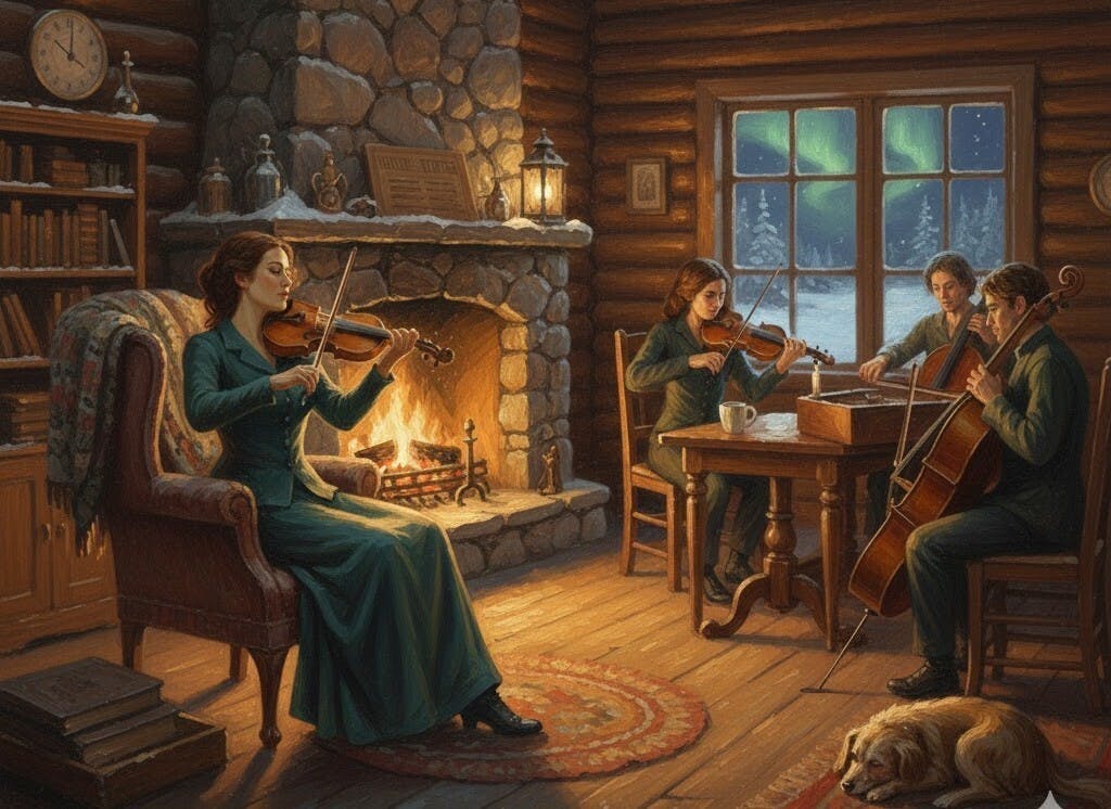第2楽章では、外の寒さから逃れて、あたたかな室内でほっと一息つくような音楽が展開されます。