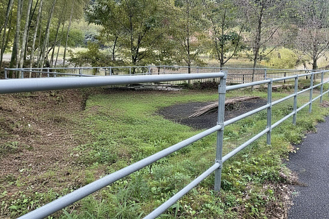 このような柵を設置し、馬と触れ合える場を作る予定です。