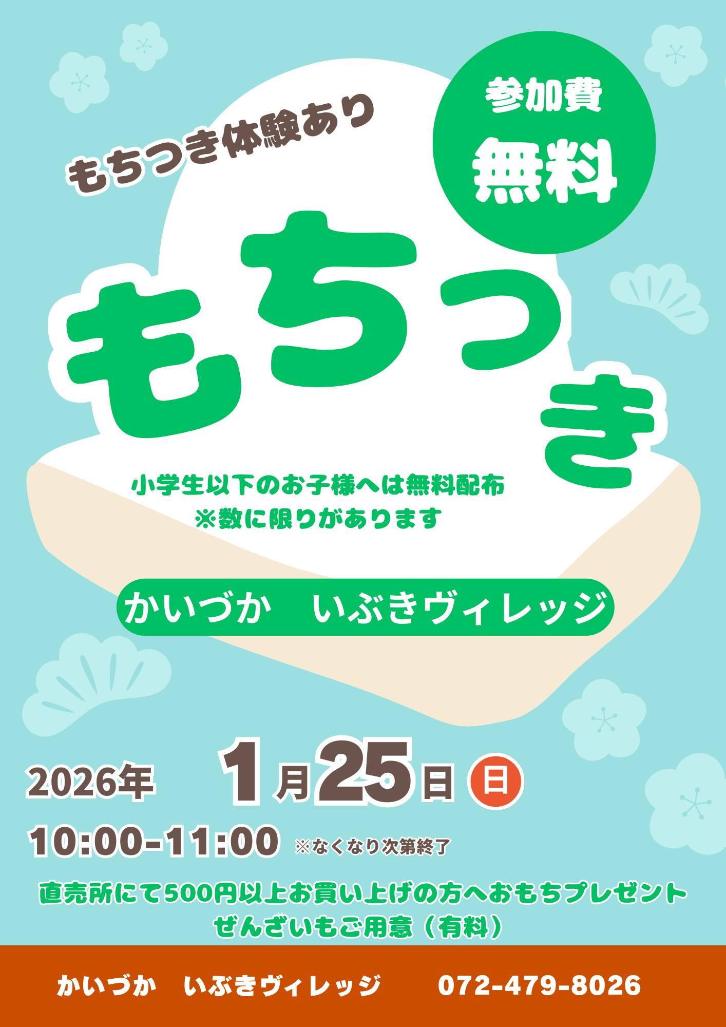2026/01/21 14:031月25日(日)にもちつきイベントを開催します。小学生以下のお子様へは無料でつきたてお餅をプレゼント!寒さ厳しくなりますが、お待ちしています。 もっと見る