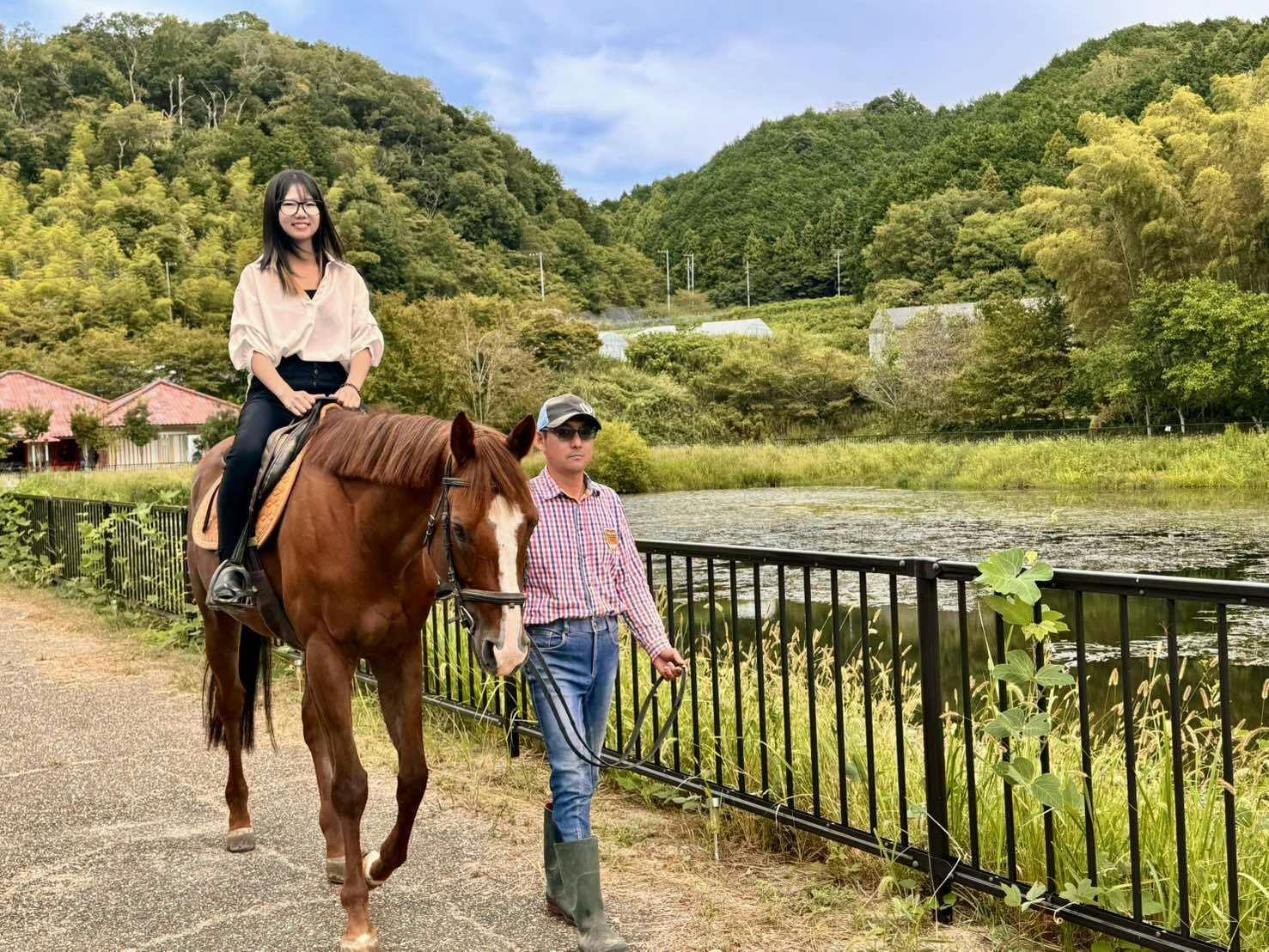 馬がグランピングエリアの橋を少し怖がるため、現在は奥の「竹や椎茸の森」を活かしたロングコースで練習中です。その姿を見ているだけでも、どこか心があたたまりますよ。