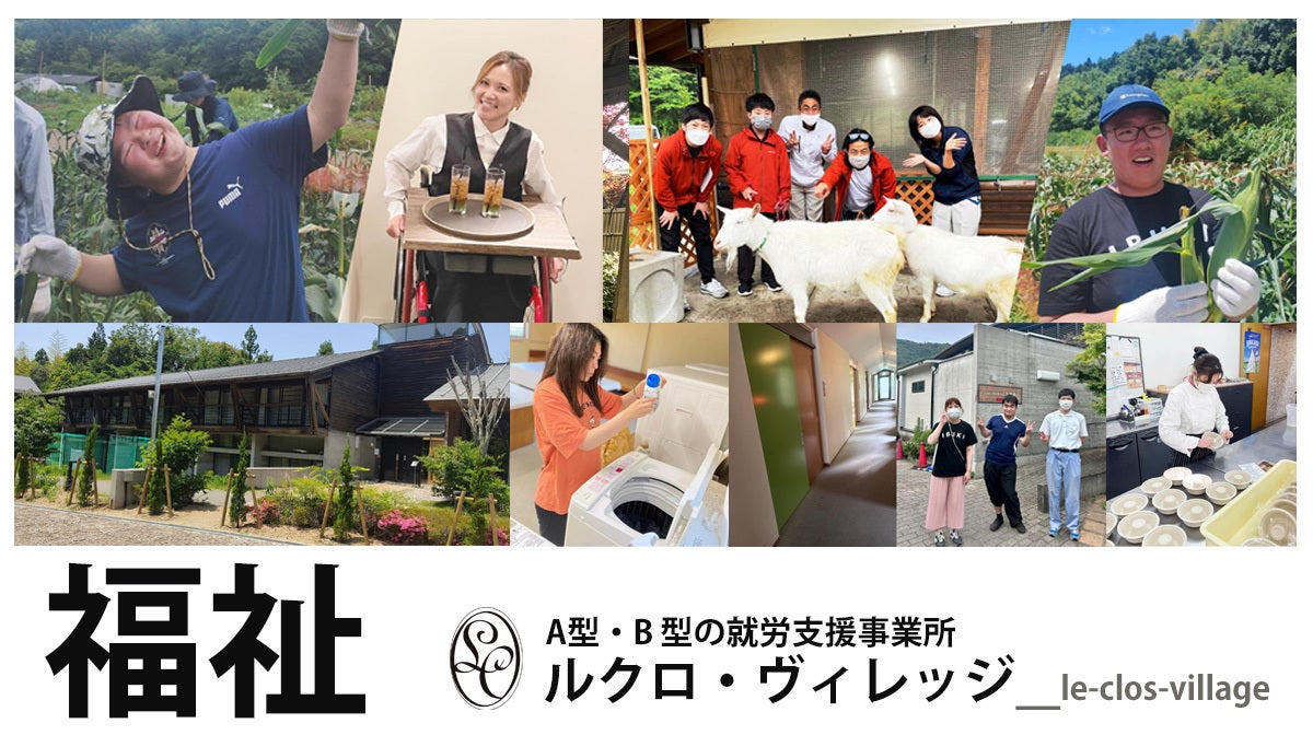 「かいづか いぶき温泉エリア」に併設している、「ル・クロヴィレッジ」では、就労継続支援A型とB型の両方のサービスを提供しています。