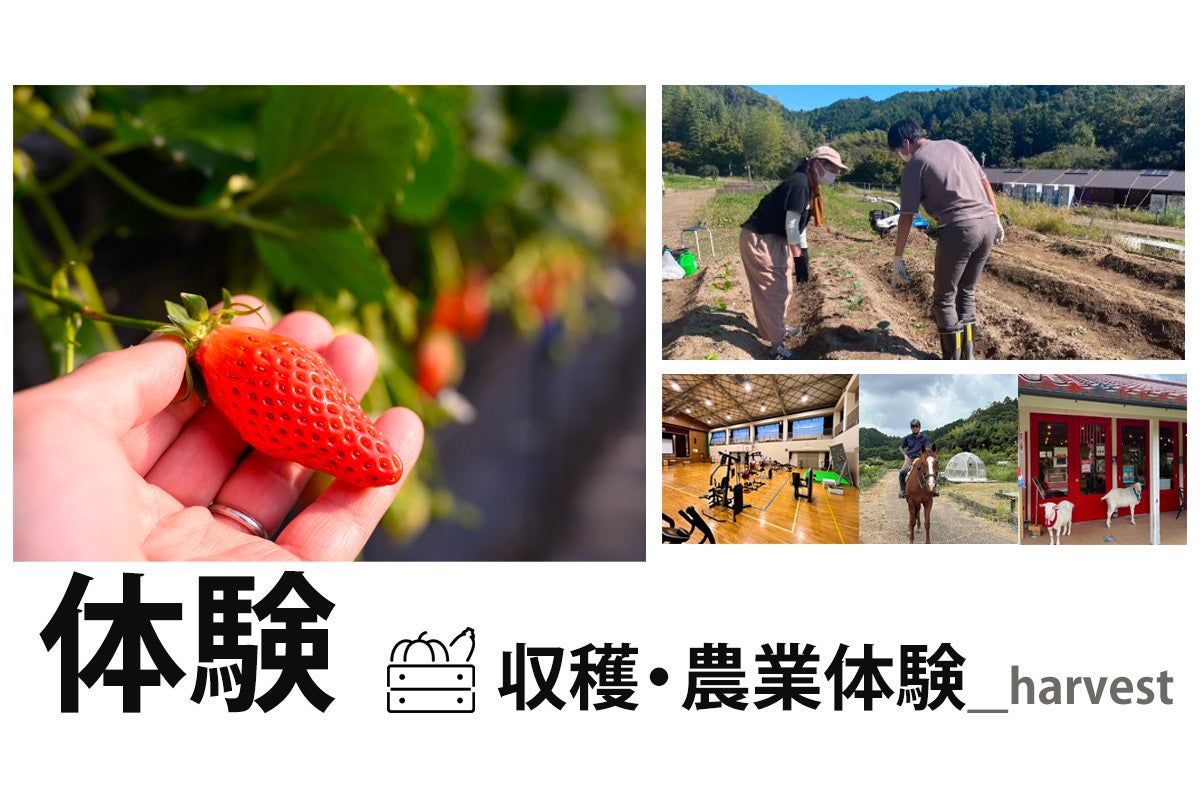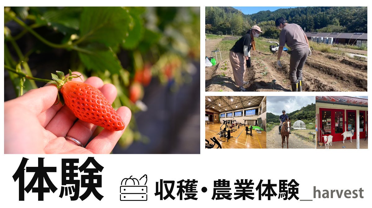 畑・竹林・ビニールハウスなどでは、旬の素材を自らの手でもぎ採って食べていただけます。また貸農園では1区画あたり60㎡ の広い敷地を用意。ひと汗かいたら、いぶきのレストランと温泉♨でくつろいでください。また温泉横には体育館施設もあり、ボルダリング・トレーニング機材・サッカー・バトミントン・バスケットなど楽しめます。施設内にはヤギや馬もいますので、動物にも触れ合えます。