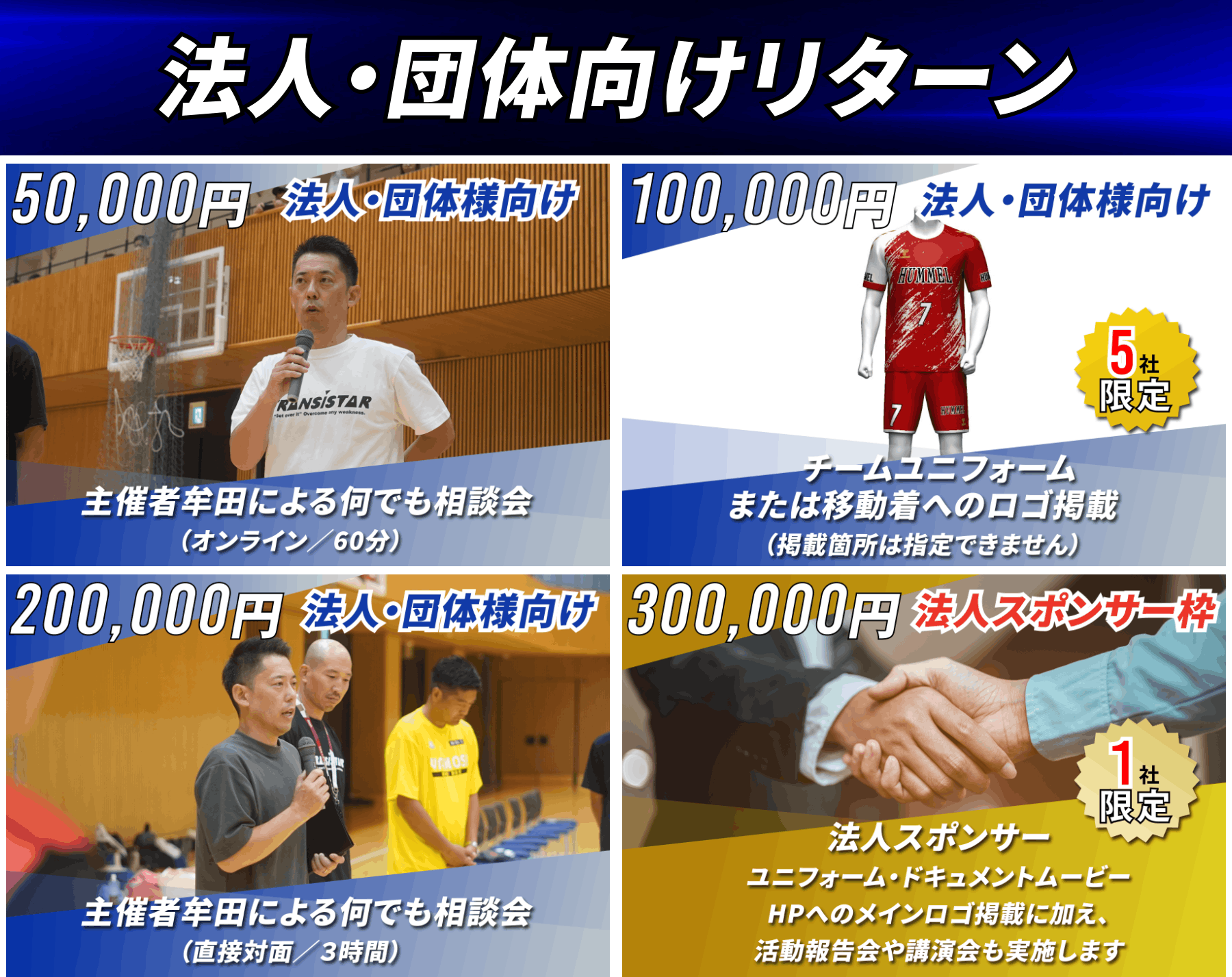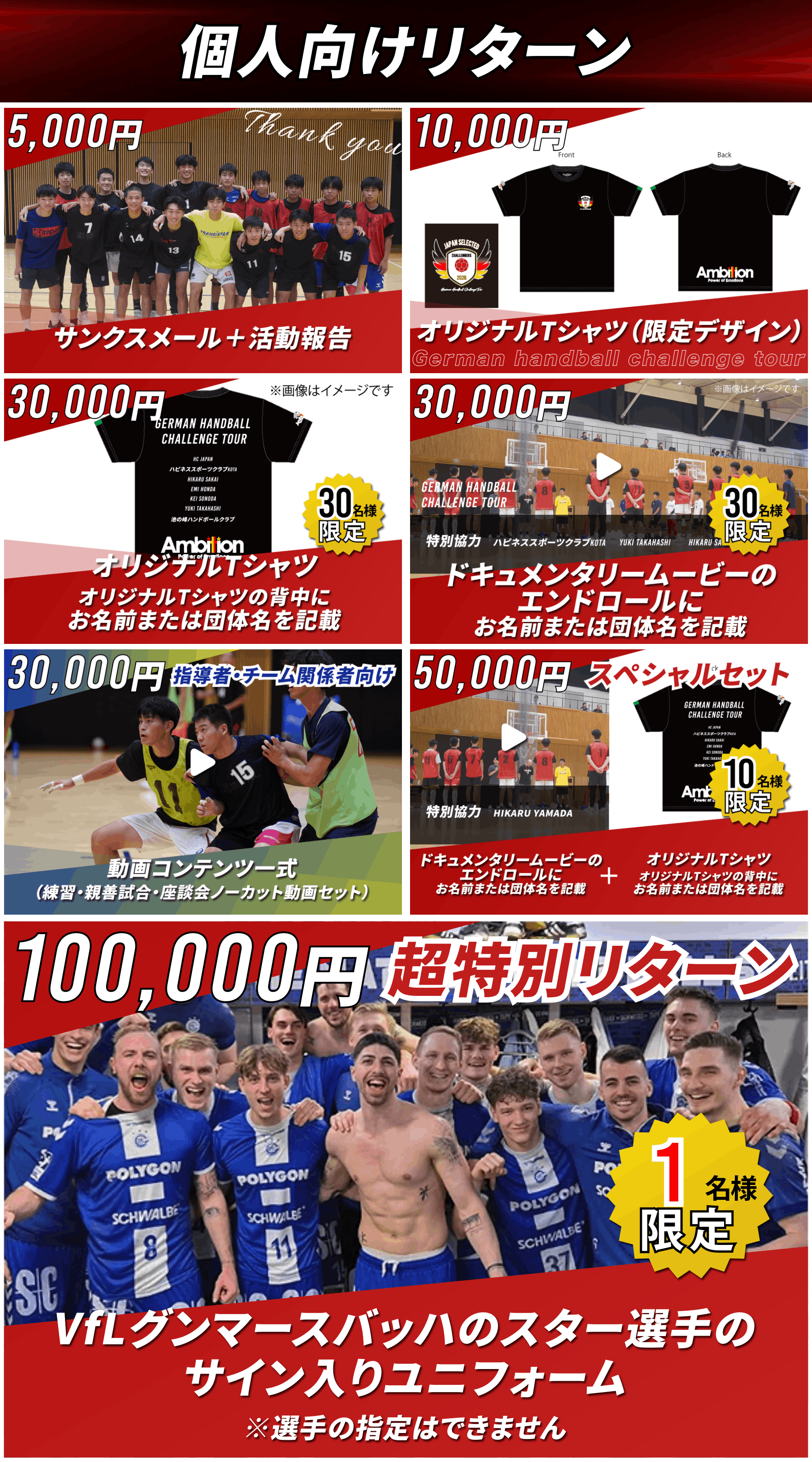 今回のクラウドファンディングは、単なる遠征の補助金ではなく、挑戦の軌跡を形にし、未来へと残すプロジェクトです。スター選手との座談会やドキュメントムービーを通じて、挑戦する子どもたちの姿をハンドボールファンの皆様やハンドボール関係者の皆様と分かち合いたいと考えています。