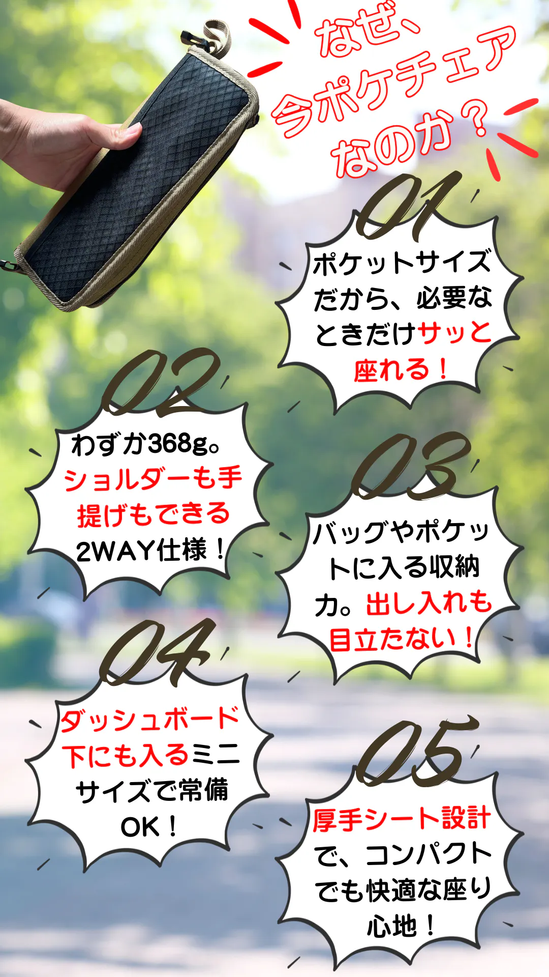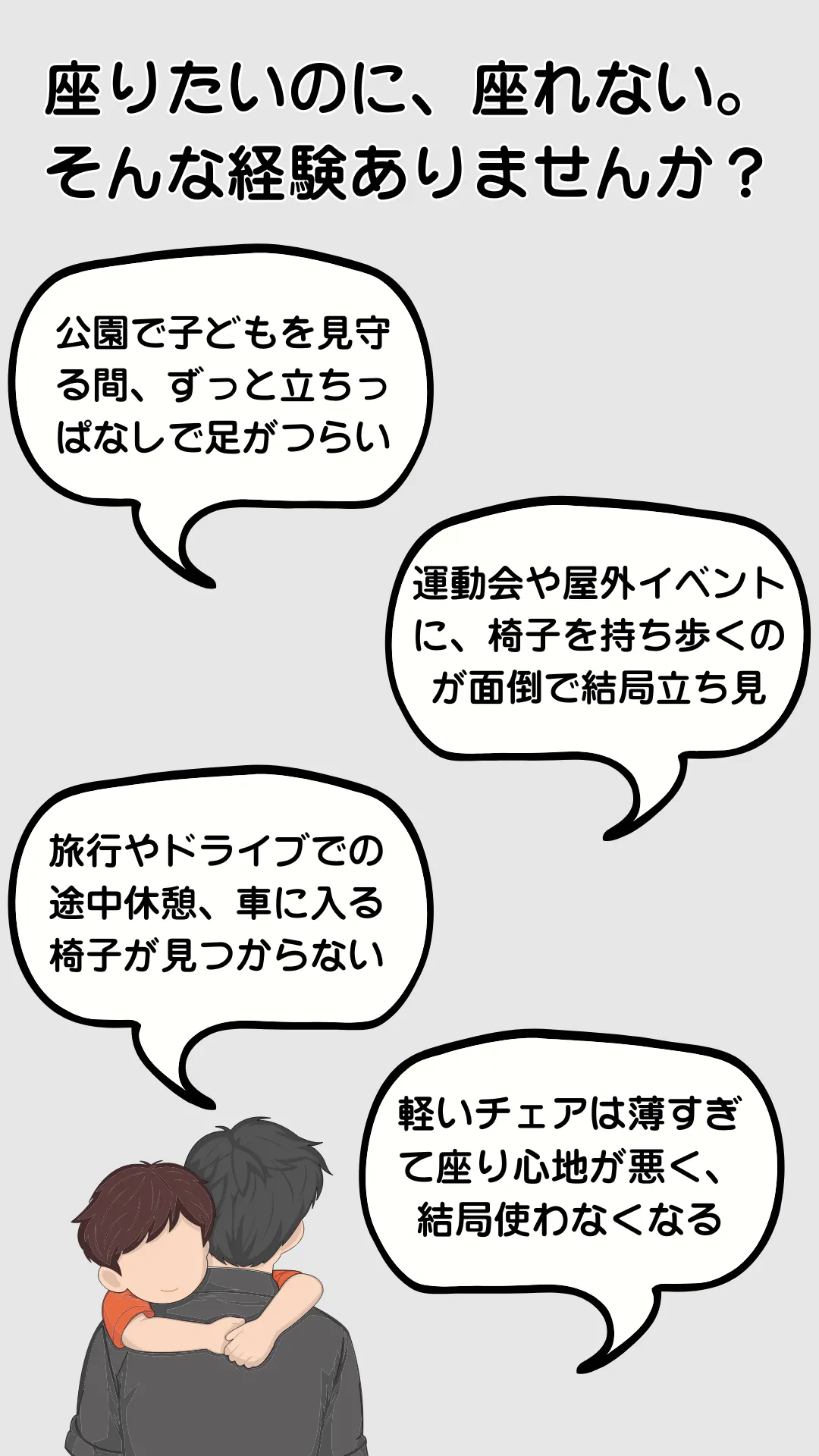 忙しいお出かけや、急な休憩にもぴったりな“すぐ使える椅子”です。