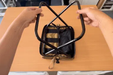 使い終わったら折りたたみ、なんと座面部分をひっくり返せばそのままポーチに早変わり。