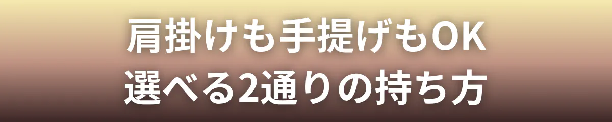 両手を空けたい時はショルダーに、さっと持ちたい時は手提げに。スタイルや荷物に合わせて柔軟に対応できる、使い手にやさしい2WAY仕様です。