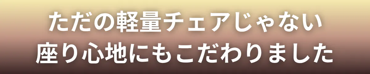 ただ軽いだけのチェアではありません。持ち運びやすさはもちろん、座り心地にもこだわりました。