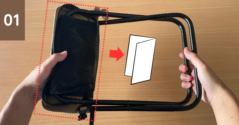 手順①:座面を内側に向けて、上図のように折り込みます。