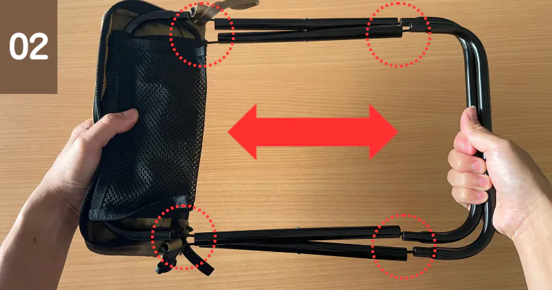 手順②:脚部両端を左右に、上図を参考に引き出します。