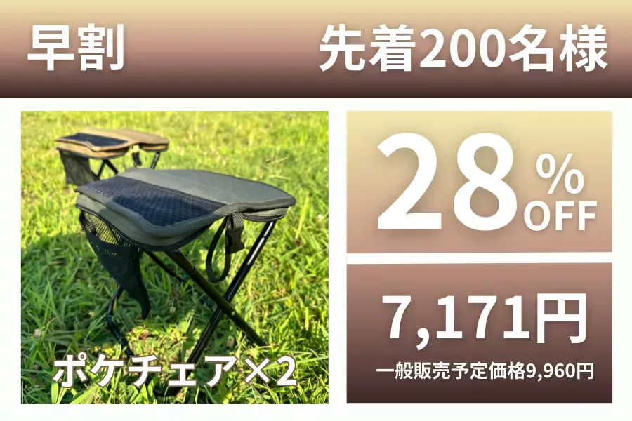 日常の中で「ちょっと座りたい」「でも荷物は増やしたくない」と感じることが多く、そんな思いからこのチェアを形にしました。持ち運びが楽で、使わない時はどこにでもしまえる。シンプルだけど、使ってみると手放せなくなる。そんな“ちょうどいい存在”を目指しています。アウトドアが好きな方も、日常で便利に使いたい方も、ぜひ一度ポケチェアのある暮らしを体験してみてください。応援よろしくお願いします!