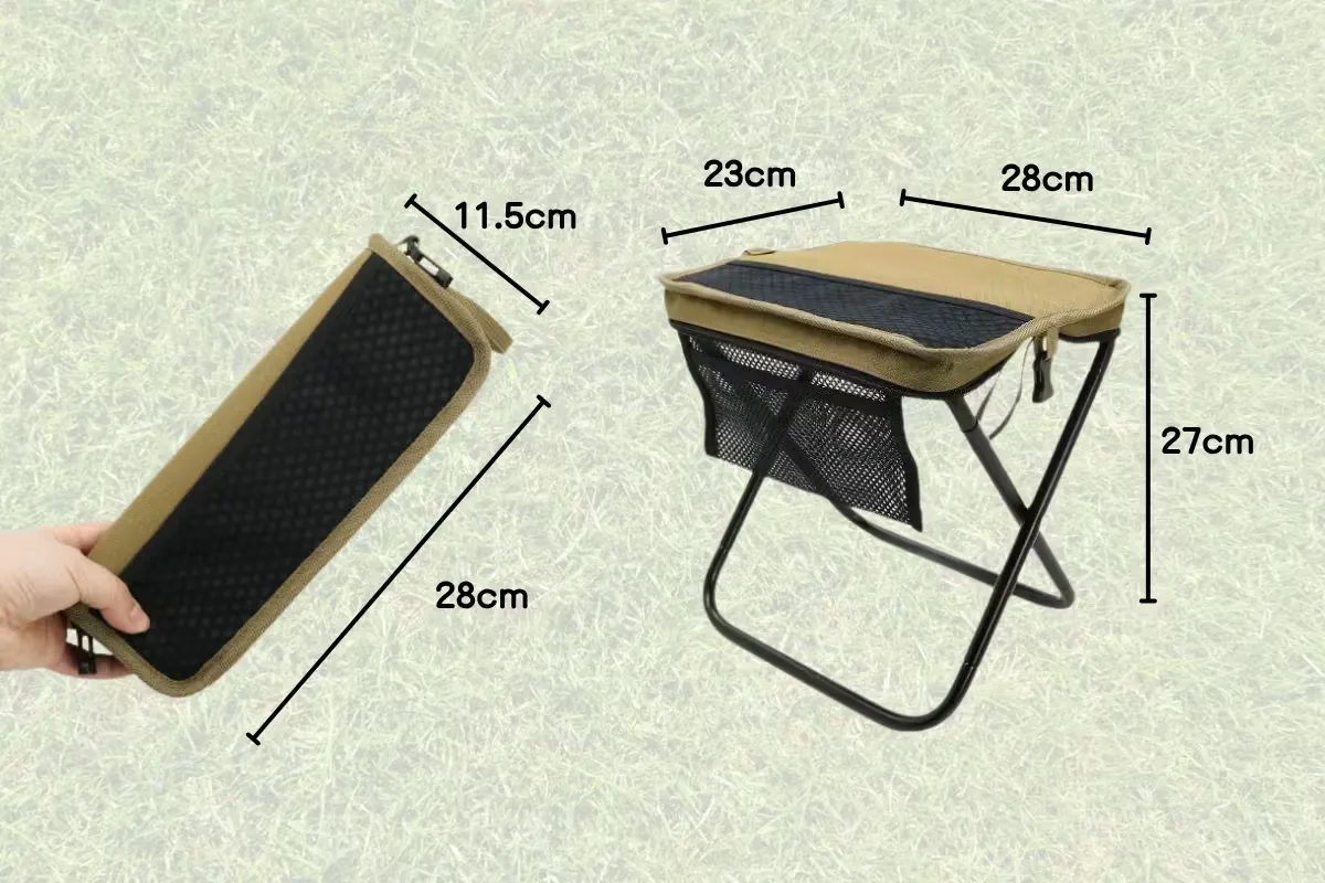 ポケチェアは、広げるだけですぐ使えるシンプル構造。工具や複雑な手順は一切不要で、慣れればほんの数秒でセット完了。