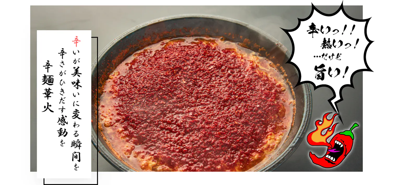 その華火の辛麺の魅力を皆さまへお贈りするため、全スタッフ邁進してまいります。