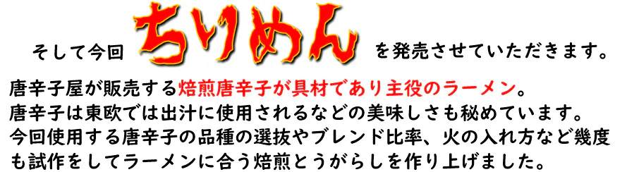 ラーメンは唐辛子の辛さやおいしさをダイレクトに表現できる数少ない料理です。