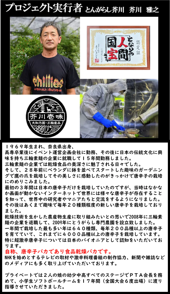 そのような実績から唐辛子のプロとして自他ともに認知をしていただいております。