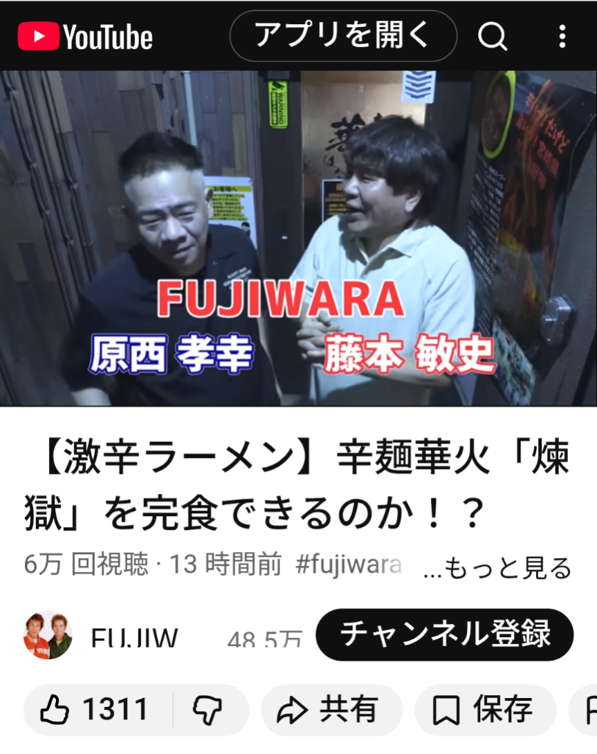 辛麺 華火さんが昨夜20時公開のFUJIWARAさんのYoutube channelで紹介されましたFUJIWARA 超合キーン上記リンクからご視聴いただけましたら幸いでございます。