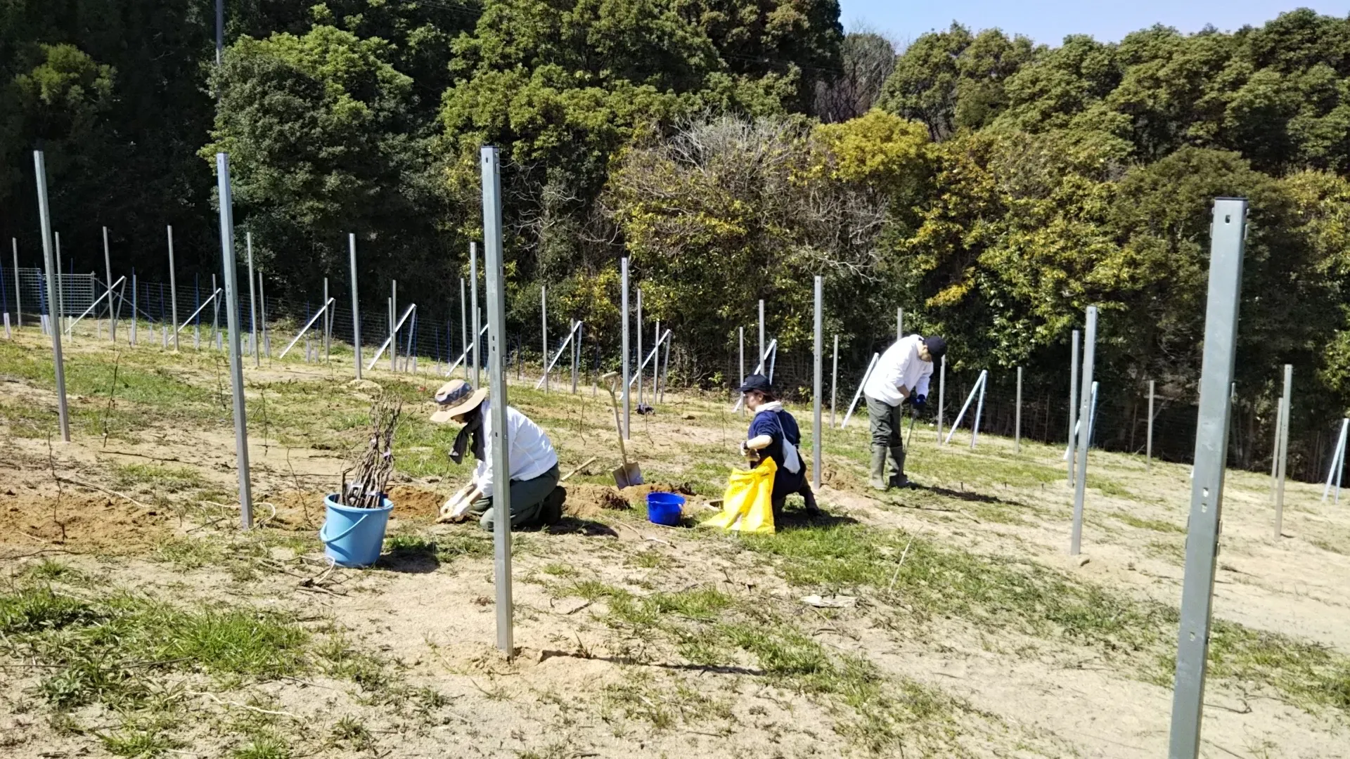 苗木の定植の様子、お手伝いに来てくれた仲間たち
