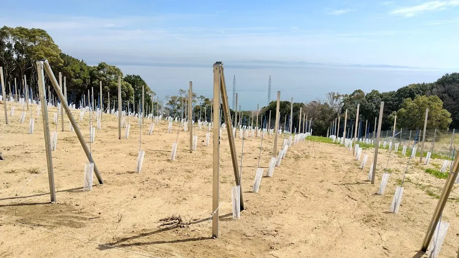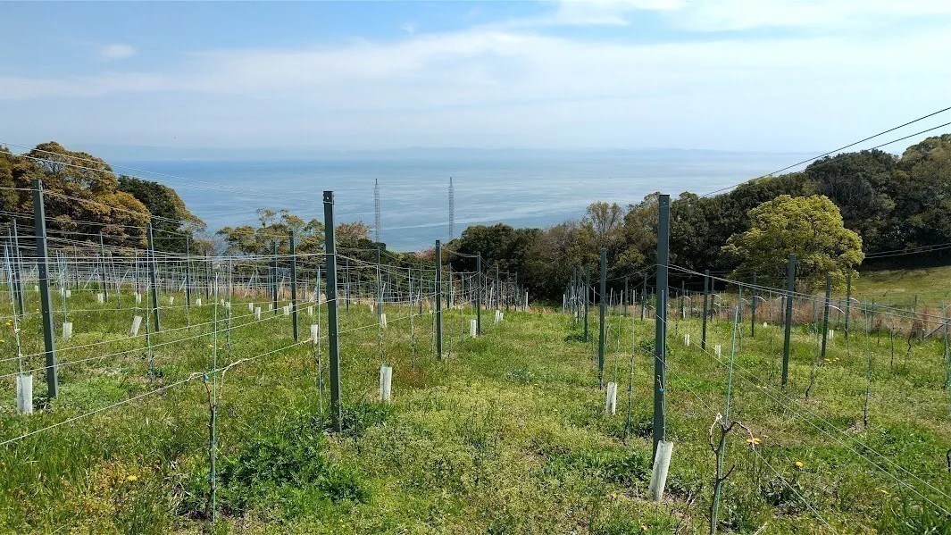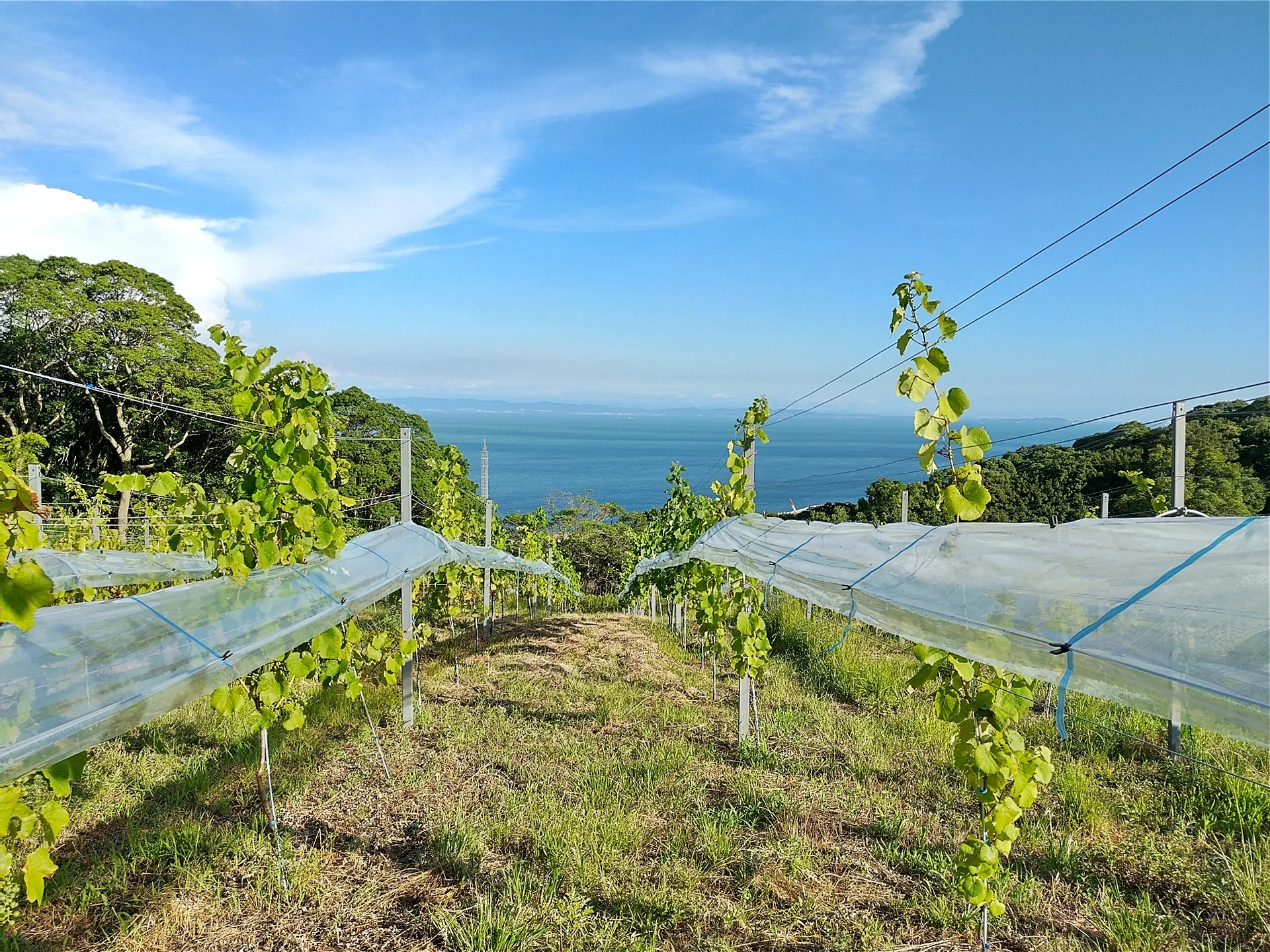 2020年には、約0.4ヘクタールを拡大し、現在は、1.3ヘクタールの一枚の畑で、潮風を感じながらぶどうを栽培しています。