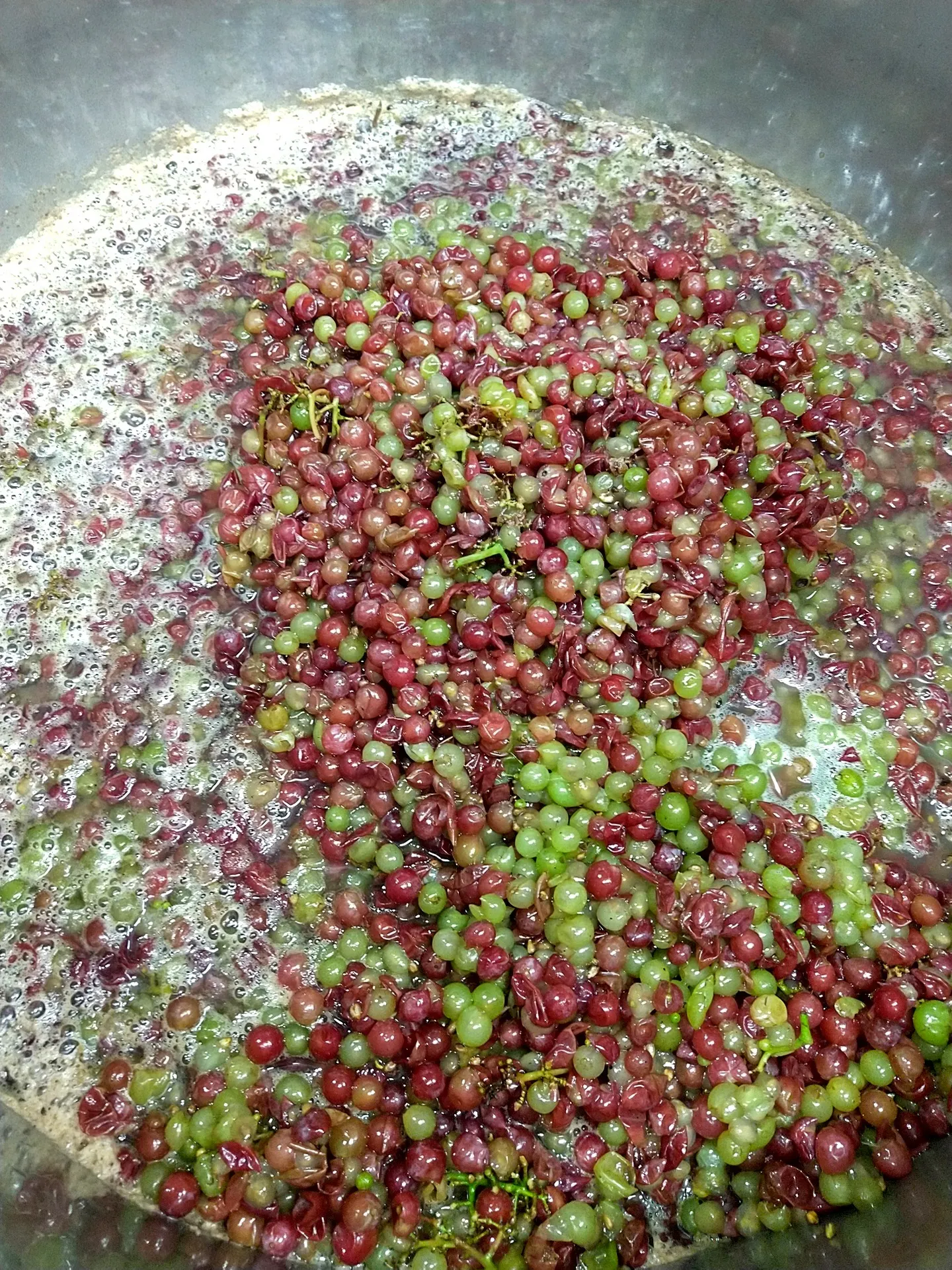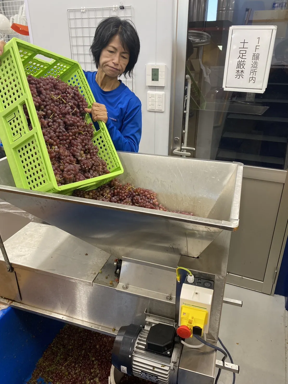 今年の仕込み:デラウエアの除梗破砕@木谷ワインさん