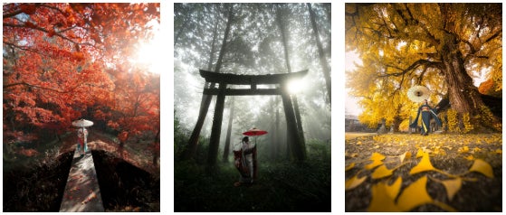 普段はInstagramを中心に、和装を取り入れたポートレートや日本の四季をテーマにした作品を撮影し、
