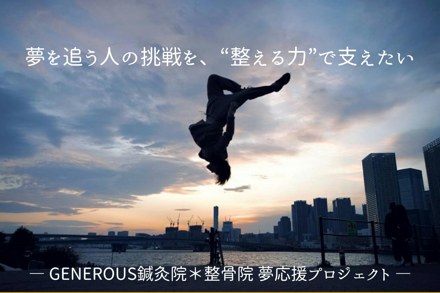 ・本プロジェクトにおける施術は、国家資格を保持する山田俊朗が、保健所に届け出済みの「GENEROUS 鍼灸院・整骨院」にて行います。