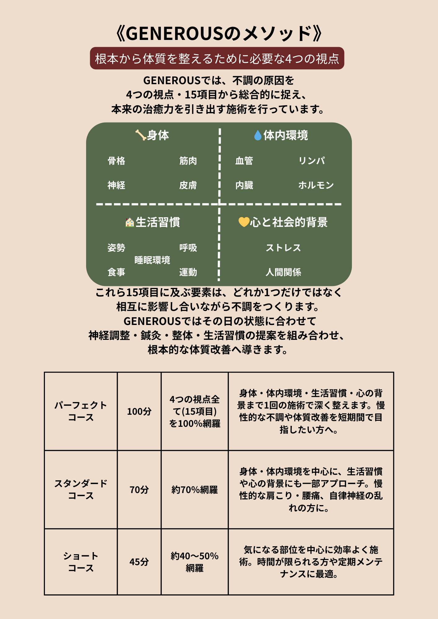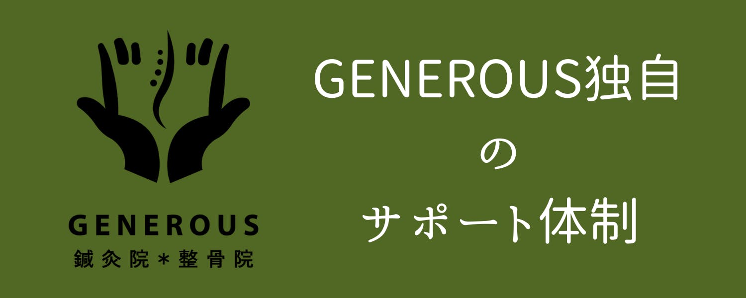GENEROUS 鍼灸院・整骨院「GENEROUS(惜しみない・寛大・思いやり)」という名の通り、一人ひとりの人生に最大限の技術を注ぎます。