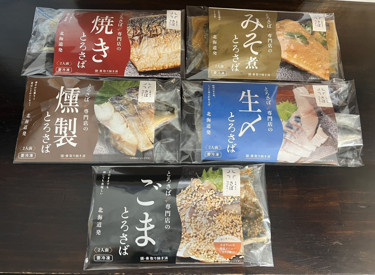 さばplusの人気メニューを一度に楽しめる贅沢なセットです。焼き・みそ煮・燻製・生〆・ごまの5種類を詰め合わせました。