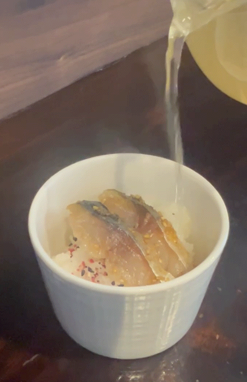 3. 半分食べたら、特製出汁を注いで“出汁茶漬け”に