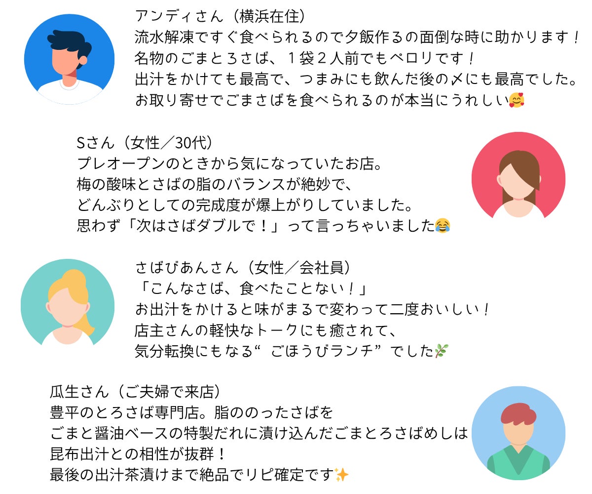 リピーターのお客様も多く、「冷凍とは思えない」「これが家で食べられるのは感動」とのお声を多数いただいています。今回のプロジェクトを通して、さらに多くの方に“さばplusの味”を届けていきます。