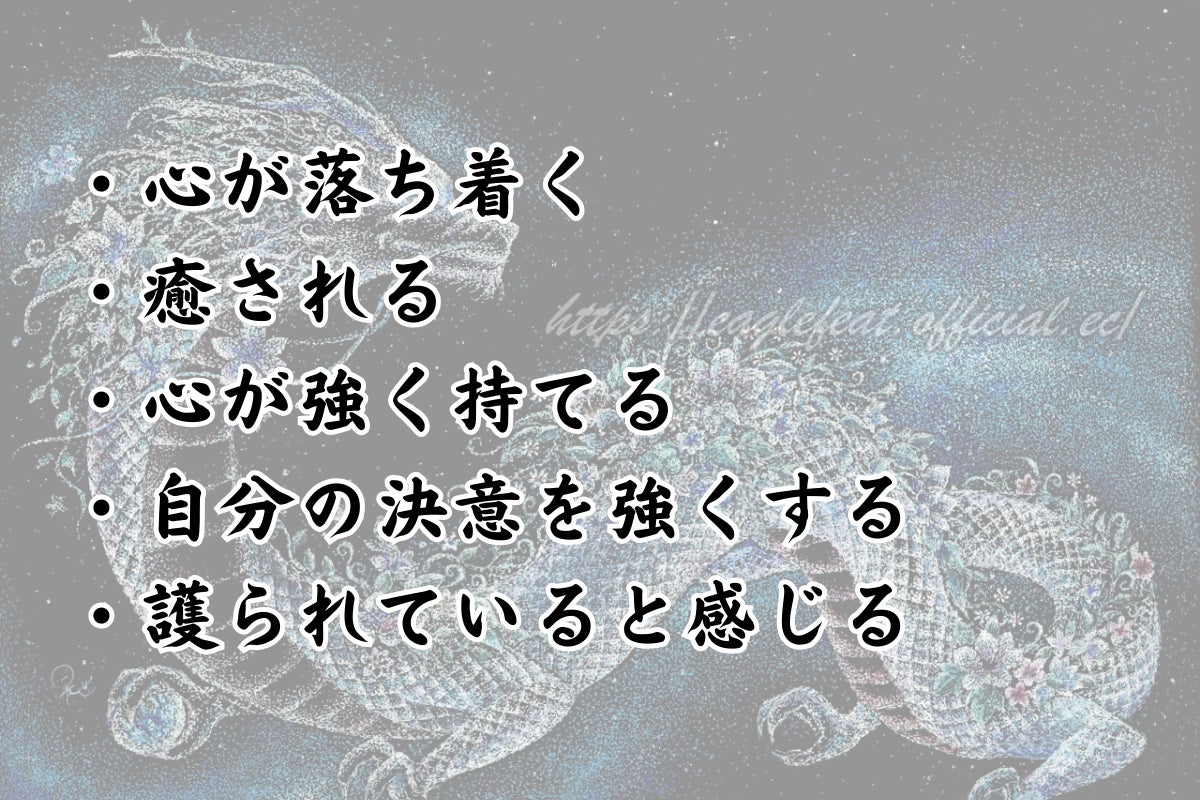 また、自然を司る存在であるだけでなく、「出世」や「飛躍」のシンボルであったり、邪気払い・浄化のエネルギーを持っているとされたり、様々な力を持つ存在と考えられている存在。