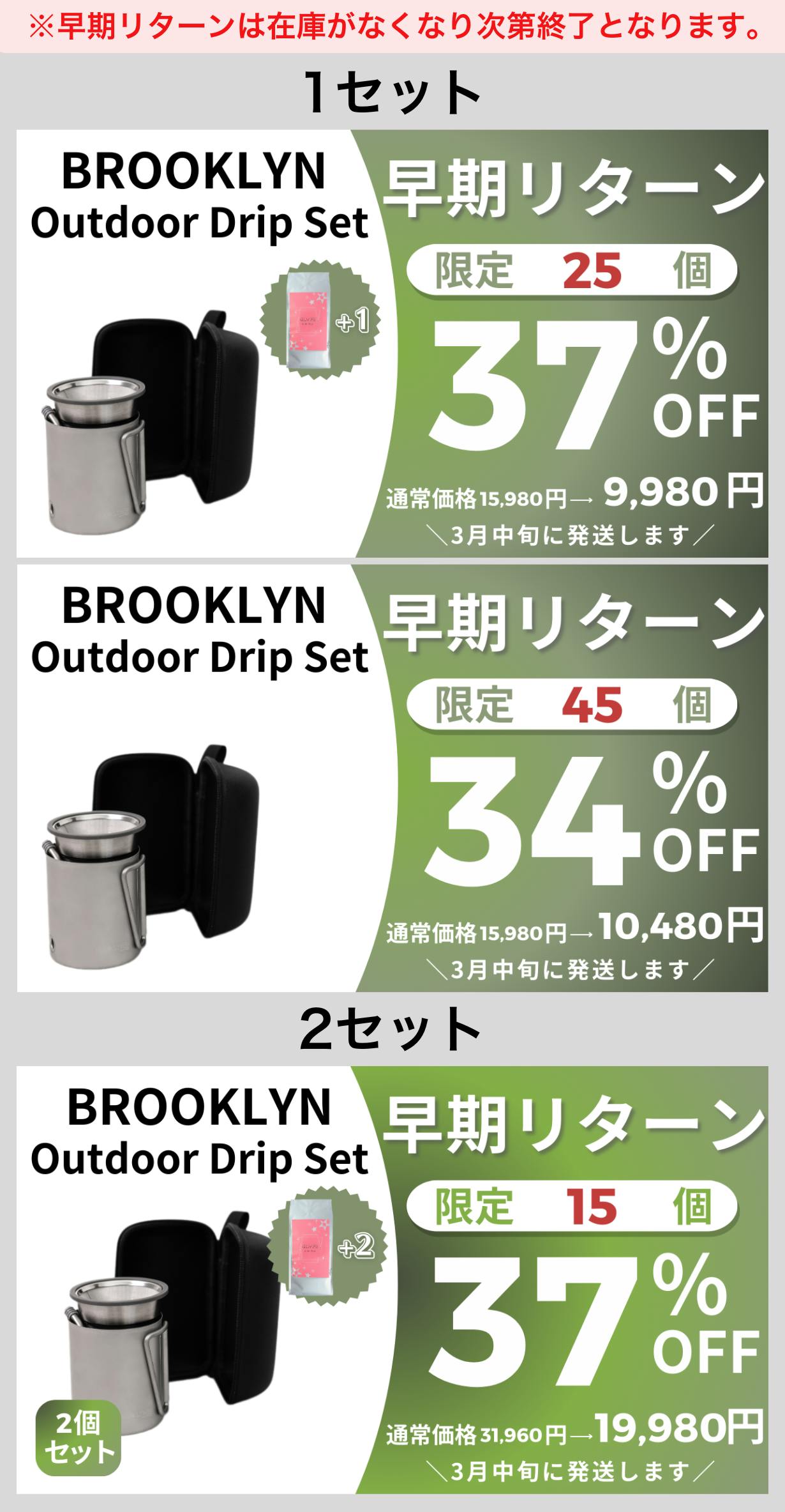 ※早期リターンは在庫がなくなり次第終了となります。