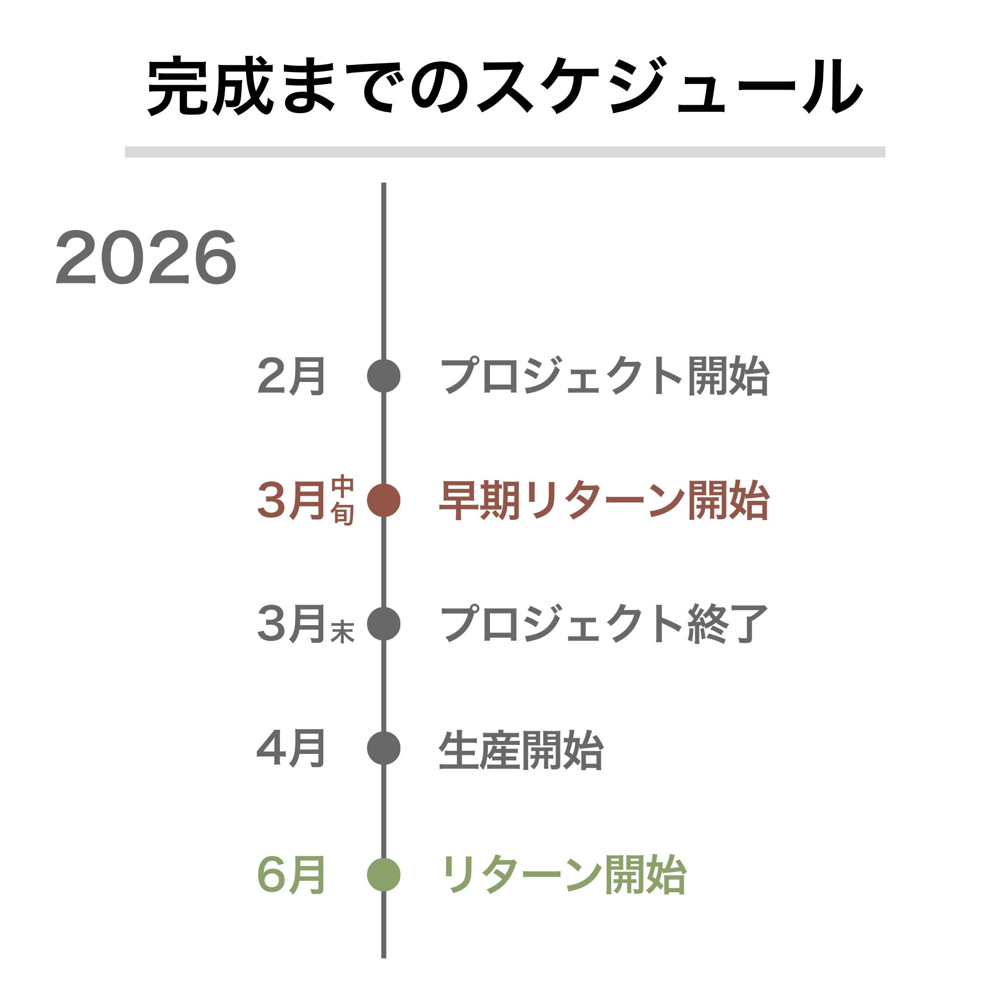 ※本文中に記載させていただいたスケジュールは、あくまでプロジェクト公開時点の予定です。クラウドファンディングを経て輸入を行う性質上、配送遅延のおそれがございます。