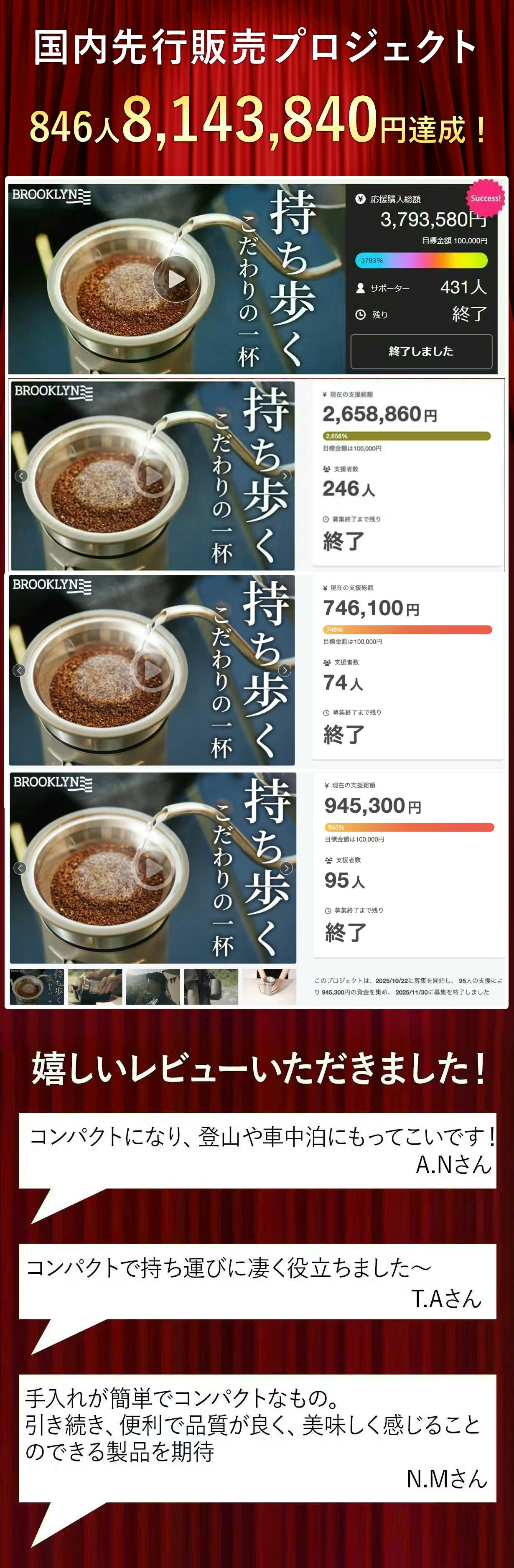 2026/02/28 21:00皆様、こんばんは!Bright DIYチームです。Brooklyn Outdoor Drip Setは、簡単な組立と幅広い活用性を兼ね備えた理想的なコーヒーギアです。組立にわずか3秒しかかからず、複雑なパーツや工具も不要で、誰でも手軽にセットアップできます。軽量かつコンパクトなデザインにより、オフィスや自宅、キャンプ、ピクニック、さらにはハイキング中にも持ち運びが可能です。どんな場所でも手軽に新鮮で香り高いコーヒーを楽しめるこのドリップセットは、忙しい現代人やアウトドア愛好者にとって、まさに理想的なアイテムです。1. 簡単な組立と幅広い活用性Brooklyn Outdoor Drip Setの最大の魅力の一つは、その簡単な組立です。複雑なパーツや工具を必要とせず、どなたでも簡単にセットアップすることができます。組立にかかる時間はたったの3秒!これなら、忙しい朝やアウトドアのキャンプ場でも手軽にコーヒーを淹れることができます。さらに、このドリップセットは幅広い活用性を誇ります。オフィス、家、キャンプ、ピクニック、さらにはハイキング中にも持ち運び可能です。軽量でコンパクトなデザインは、バッグの中にすっぽり収まり、いつでもどこでも持ち運べるため、場所を選ばずに使用できます。2. どこでも大活躍Brooklyn Outdoor Drip Setは、その優れたデザインと機能性により、どこでも大活躍します。自宅でリラックスしながら、オフィスでの休憩時間に、アウトドアでの冒険の最中にも、いつでも新鮮で香り高いコーヒーを楽しむことができます。外出先でも、気軽においしいコーヒーを楽しめるのは、コーヒー愛好者にとっては大きな利点です。3. 簡単だから、飲みたい時にすぐ淹れられるコーヒーを淹れる時間を短縮し、手軽に楽しめることは忙しい現代人にとって重要なポイントです。Brooklyn Outdoor Drip Setは、簡単な操作であっという間にコーヒーを淹れることができるため、時間の節約にもつながります。特に、朝の忙しい時間や、リフレッシュしたい短い休憩時間にもぴったりです。Brooklyn Outdoor Drip Setは、簡単な組立、幅広い活用性、そして迅速なコーヒー抽出が可能な優れたコーヒーギアです。どこでも大活躍し、コーヒーを淹れたい時にすぐ淹れられるその手軽さは、コーヒー愛好者にとってまさに理想的です。このドリップセットを手に入れて、いつでもどこでも極上の一杯を楽しんでみてはいかがでしょうか。以上、Bright DIYチームでした!ご興味のある方、ぜひ支援お願い致します。https://camp-fire.jp/projects/view/890899Brightチームは、当プロジェクトをもっと多くの方に知っていただきたいと考えております。よかったら、FacebookやTwitter等のSNSでのシェア・拡散をお願い致します。#outdoordripset #brightdiyどうぞよろしくお願い致します。Brightチーム もっと見る