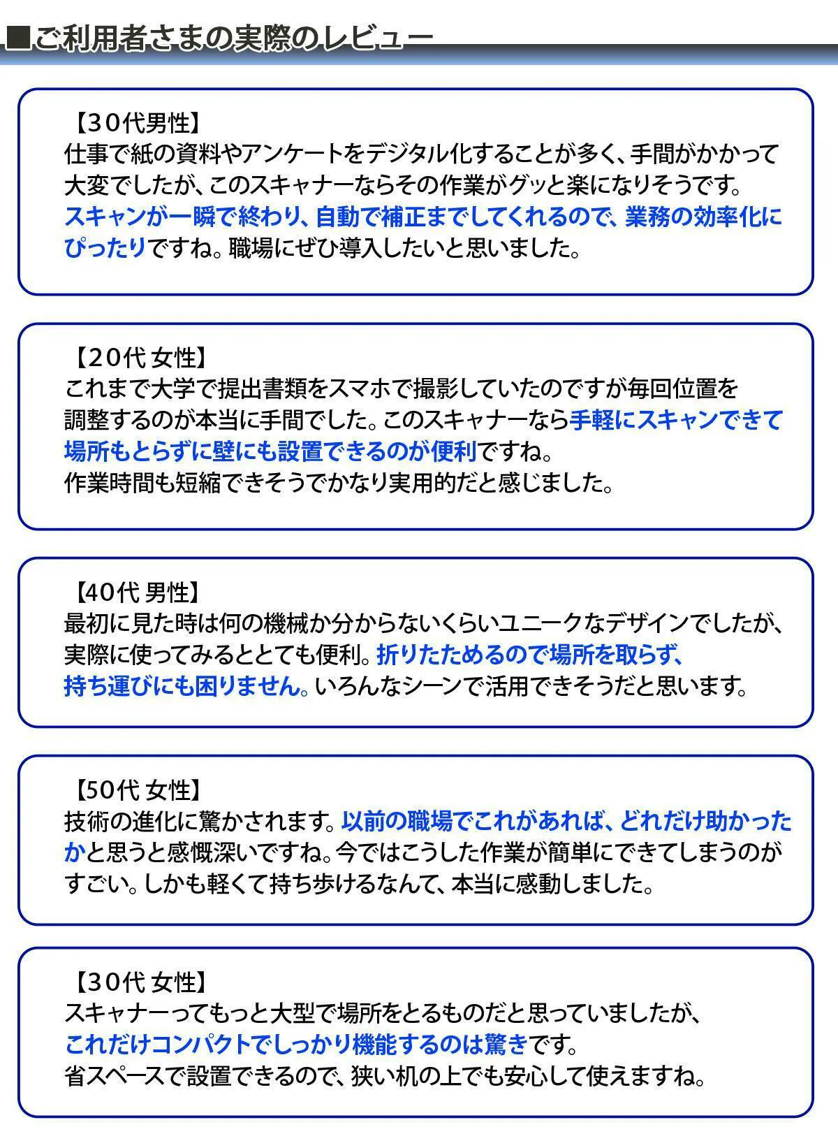 瞬時にピントを合わせながら文字や画像を鮮明に捉え、わずか1秒でスキャンを完了させます!