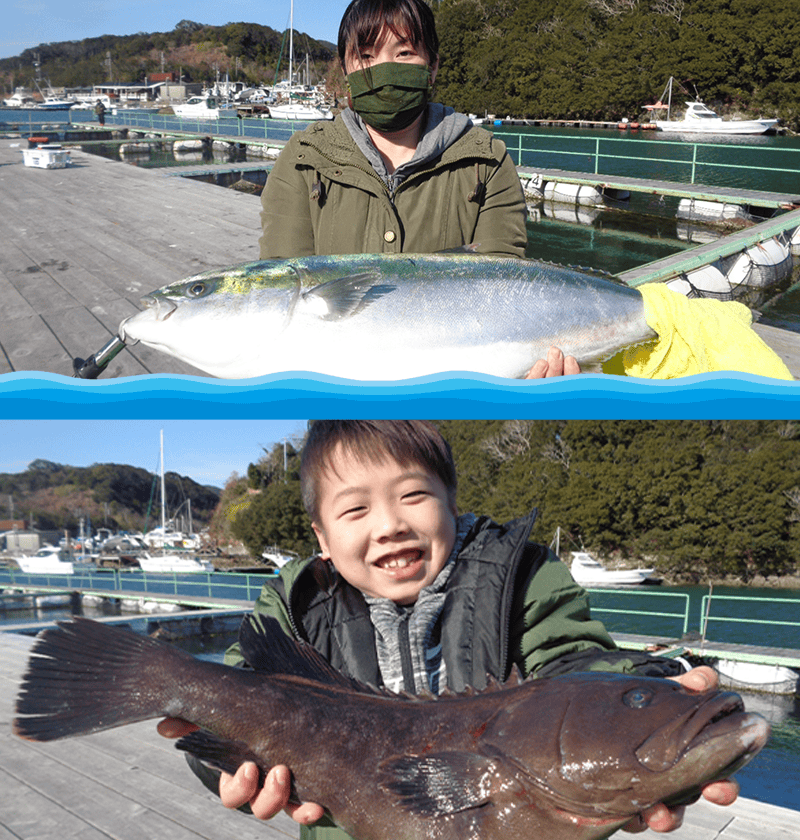 ・ワラサ・カンパチ・マダイ・大ダイ・イサキ・マハタ・大ハタ・ヒラメ ・スズキ・イナダ・グレ・イシダイ・シマアジ・クロダイ・クロソイ 季節により異なります。 |