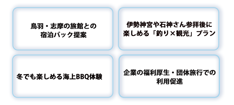 また、観光だけにとどまらず、学校教育や地域イベント、福祉との連携など、海と地域と人をつなぐ“架け橋”のような存在として、地域の課題解決にも貢献していければと考えています。