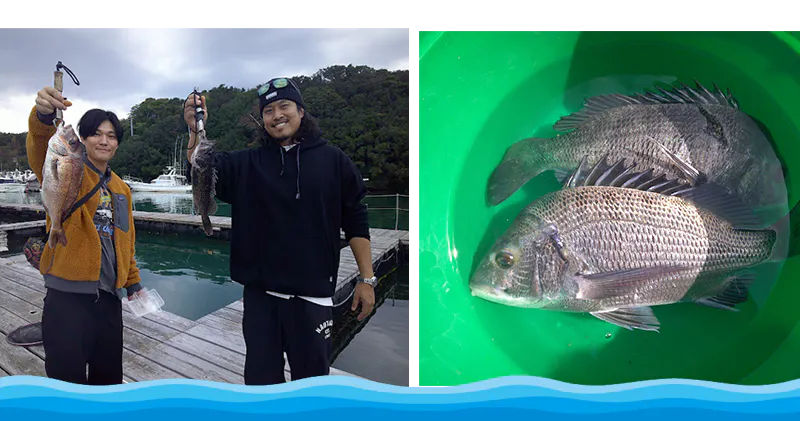 釣り堀では、真鯛・イサキ・イナダ・ヒラメ・イシダイなど、地元の新鮮な魚を放流しており、「釣れる楽しさ」をしっかり味わえるのが魅力。