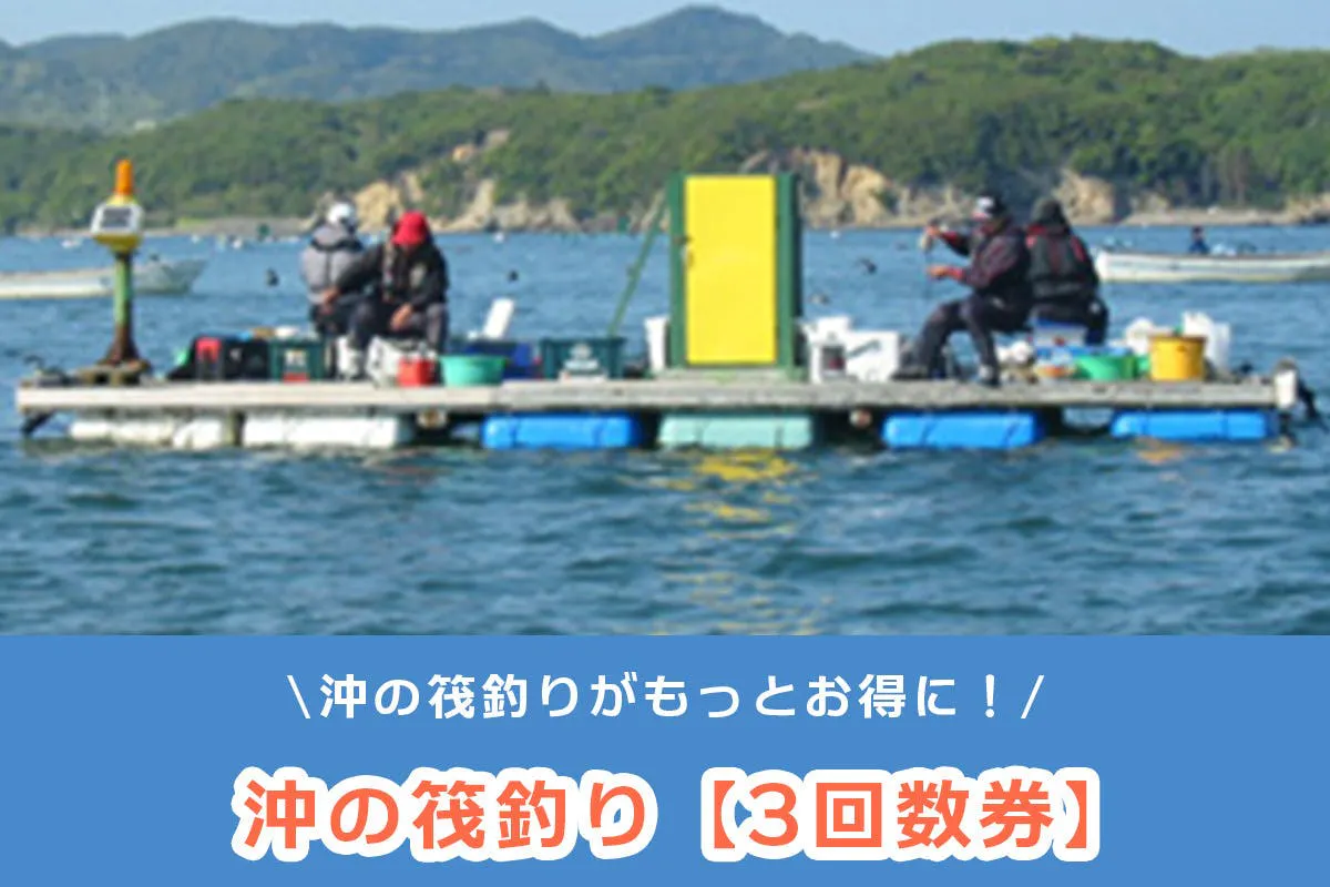 10,000円 【追加しました!】沖の筏釣り【3回数券】 通常の渡船料金よりも3,200円お得に沖の筏釣りが楽しめます。 ※釣り堀対象外 |